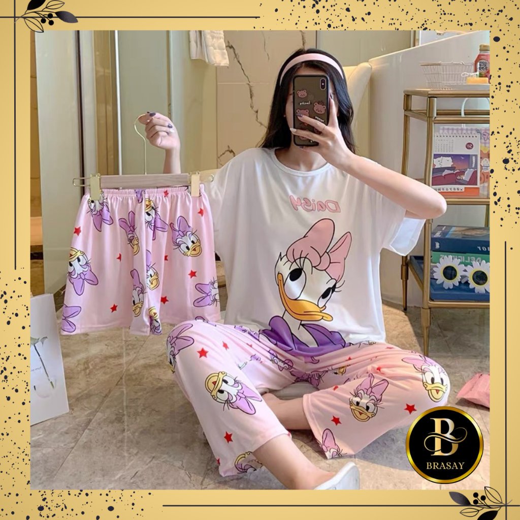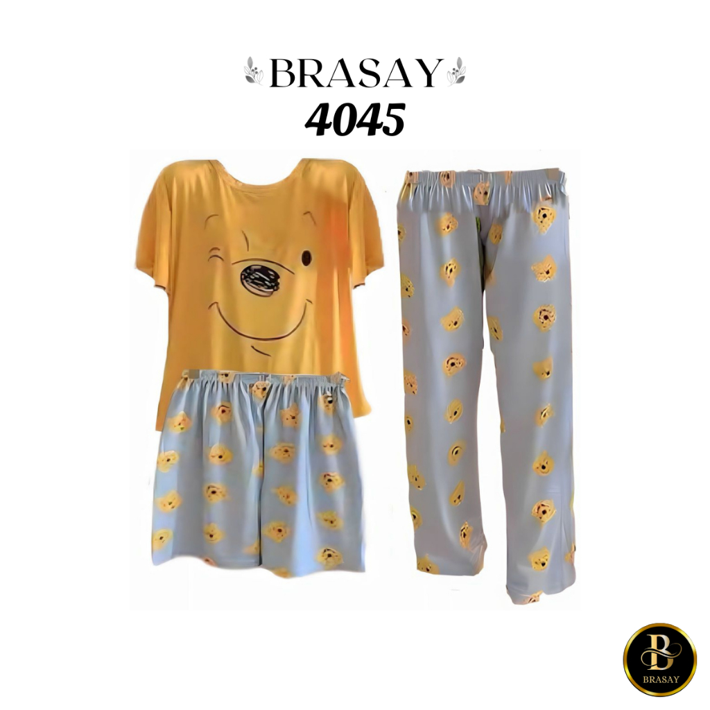 Fashion Lu Store Brasay Piyama 3 In 1 Piyama Lengan Pendek Baju Tidur Baju Tidur 3in1 4045