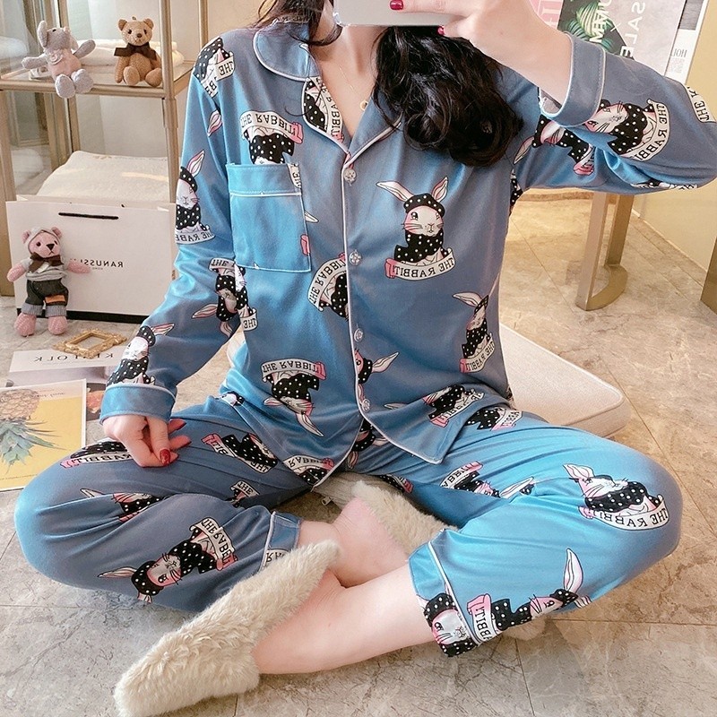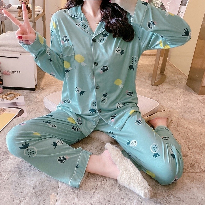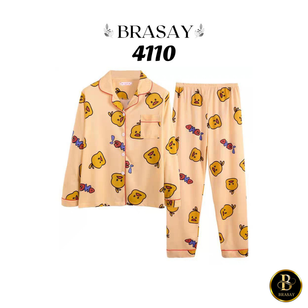 Fashion Lu Store Brasay Baju Tidur Wanita Piyama Cewek Set Lengan Panjang Celana Panjang Style Korea Dewasa 4110
