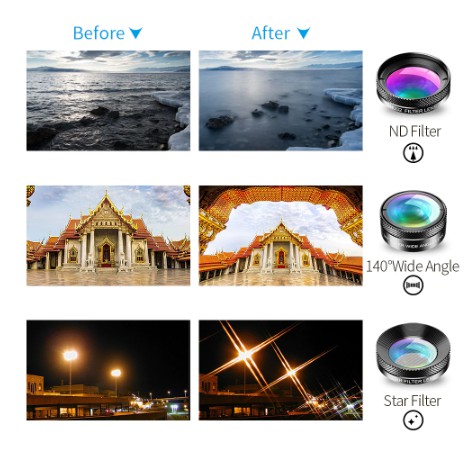APEXEL 6 in 1 Lensa HP Wide Angle macro Lens Fish Eye CPL/Star Filter