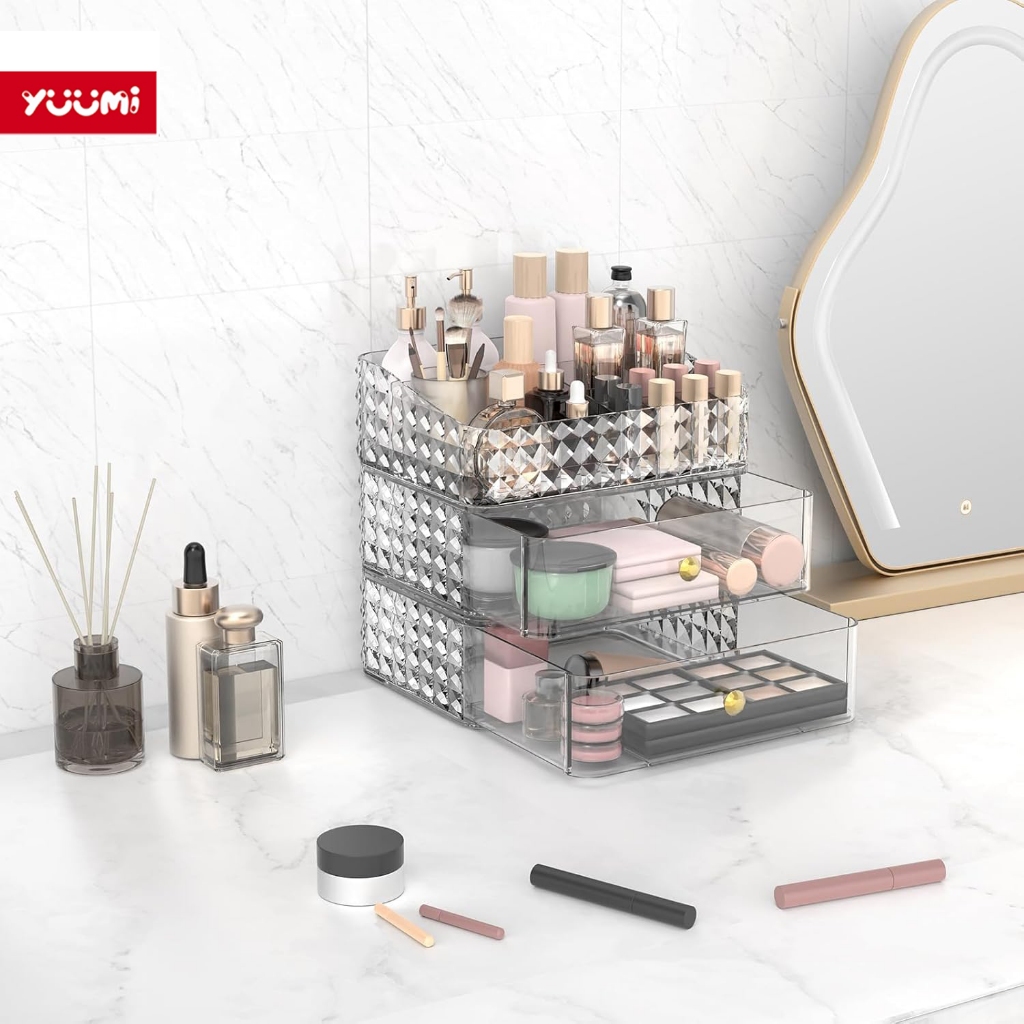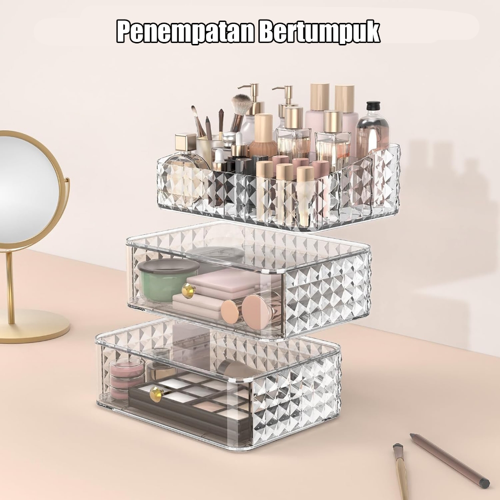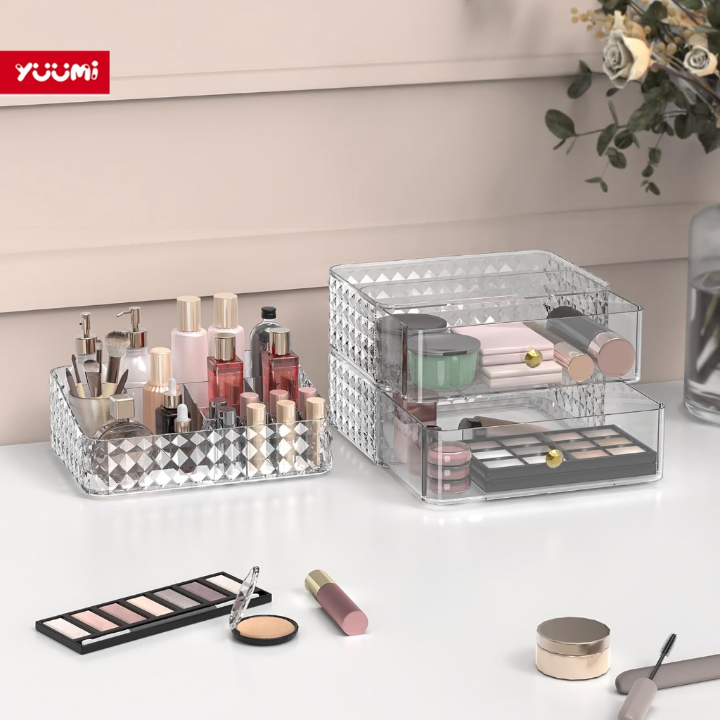 ZENI COLLECTION Yuumi Rak Kosmetik Acrylic Transparan - Organizer Makeup & Skincare untuk Lipstik dan Aksesoris Kecil, Laci Multifungsi dengan Tempat Kuas