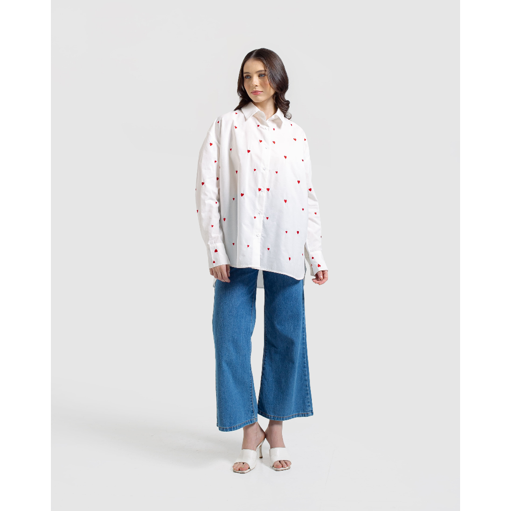 Fashion Lu Store SLIMAH - Amore Top Kemeja Oversized Bordir Wanita