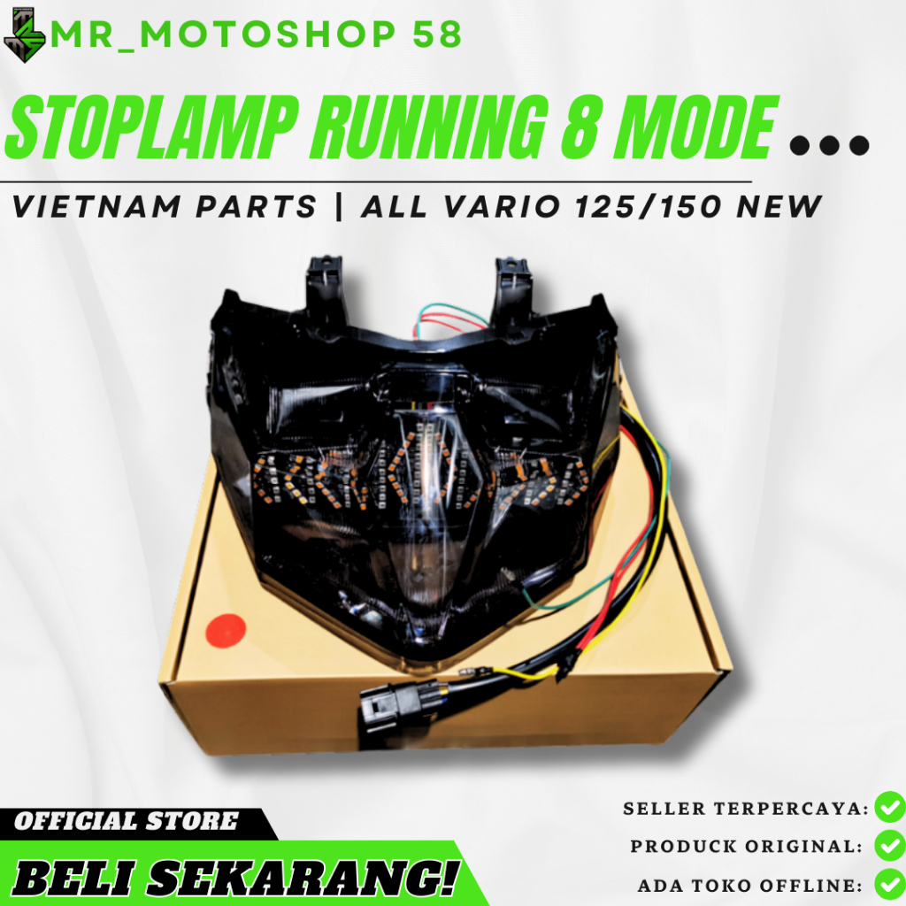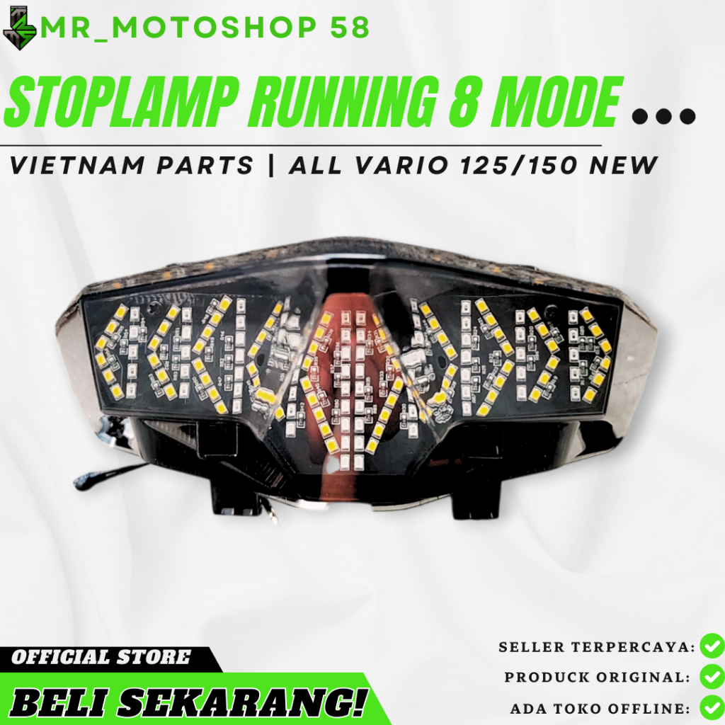 STOPLAMP RUNNING VARIO 125 150 LED NEW 1 SET MIKA LENGKAP LAMPU TINGGAL PASANG 3 IN 1 RUNNING 8 E