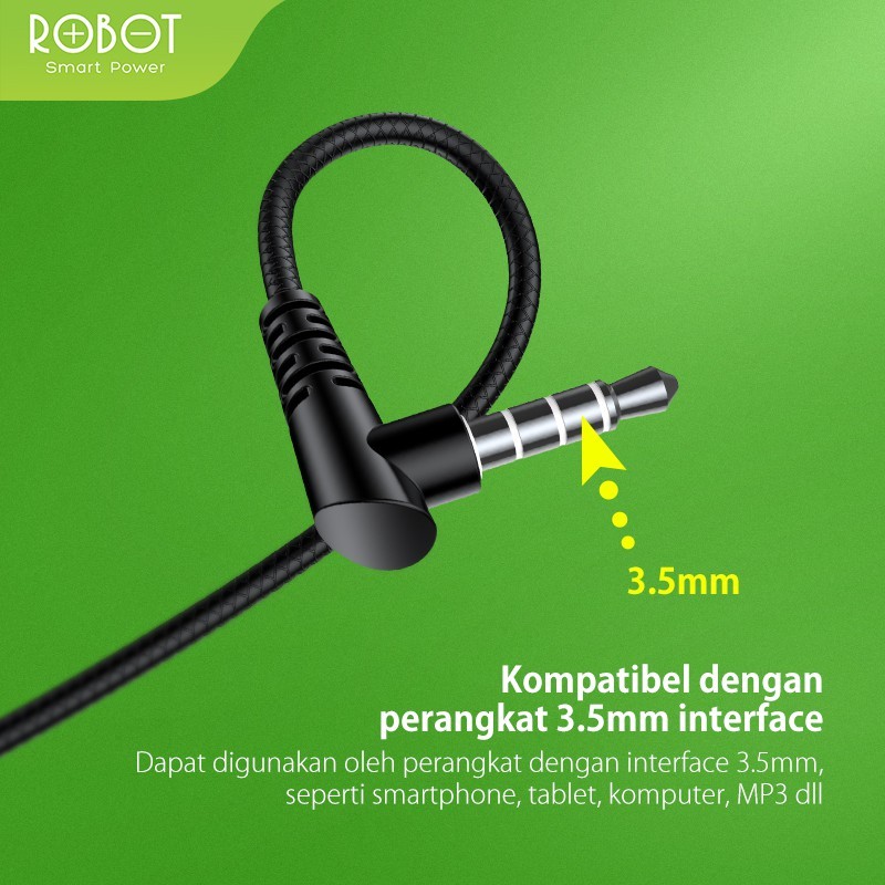 ROBOT Headset Kabel RE101S Wired Earphone Super Bass Audio jack 3.55 Original - Garansi 1 Tahun