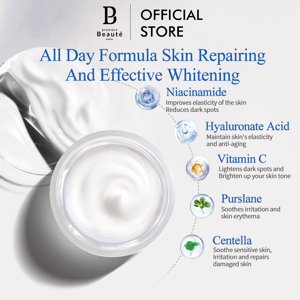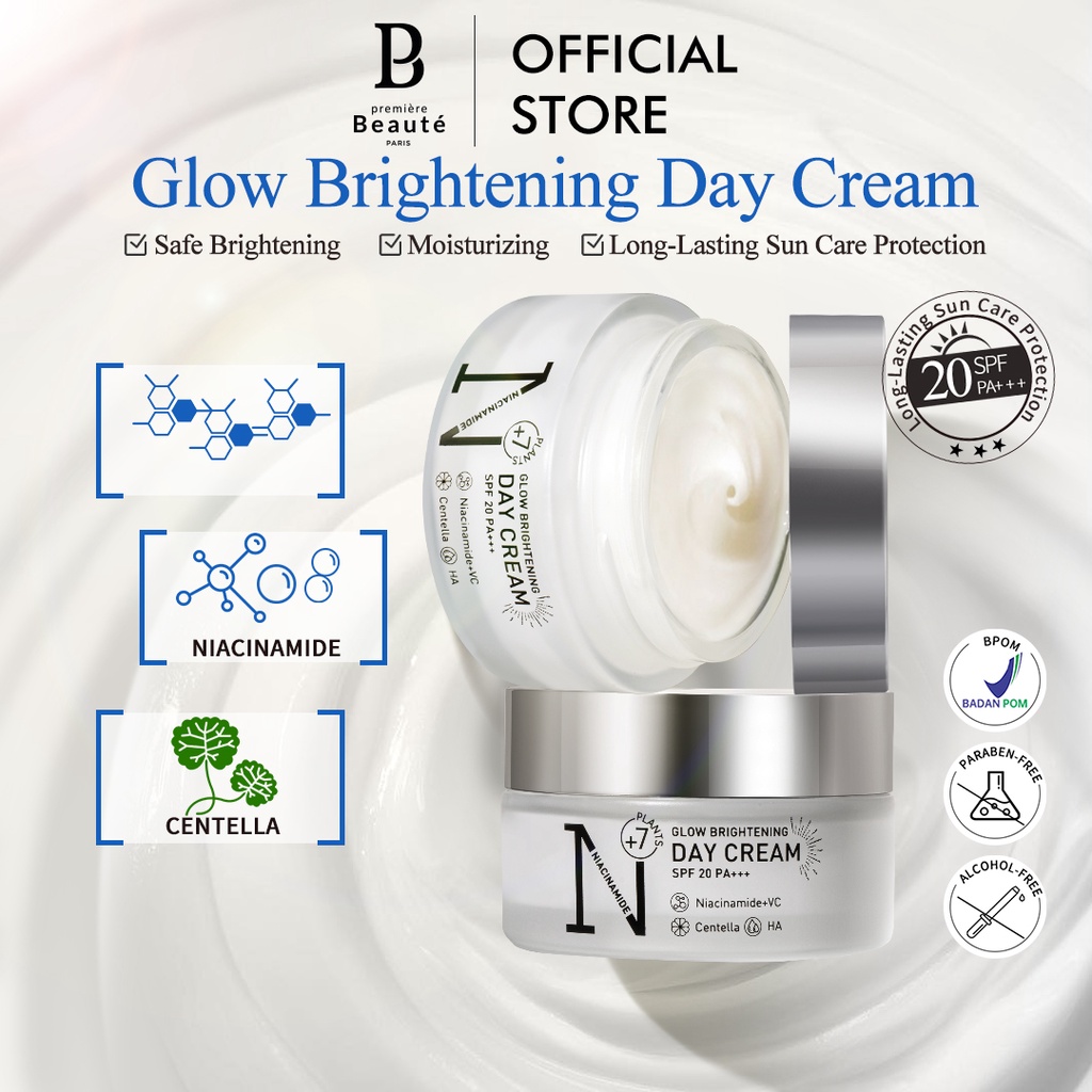 PREMIERE BEAUTE Day Cream Niinamide Centella pelembab wajah White Glow Brightening 30g 20SPF PA+++ Cream Pemutih Wajah C