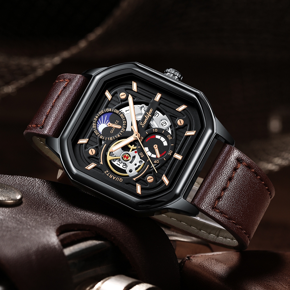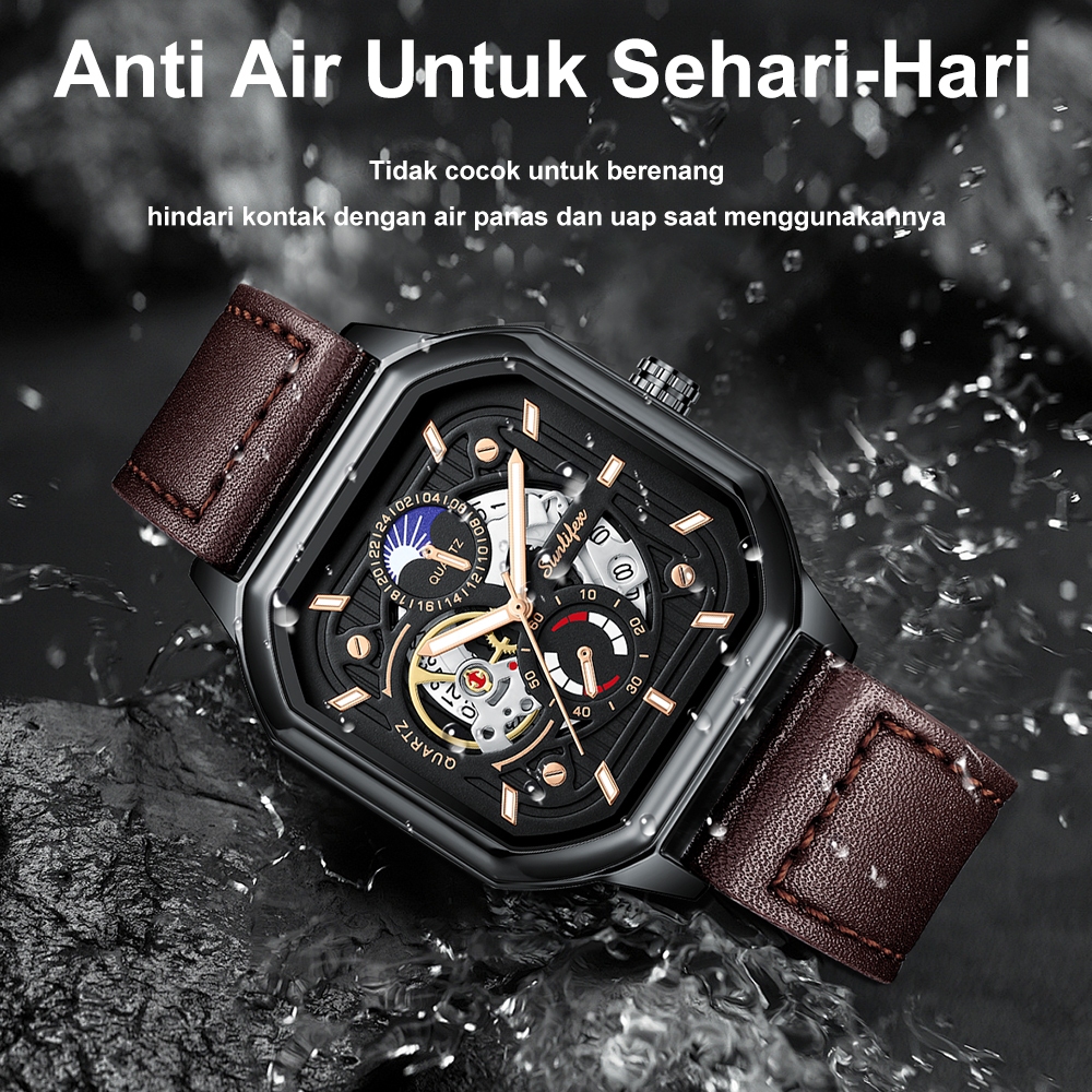 mall inline badgeSunlifex Jam Tangan Pria 9095 Kuarsa Olahraga Kasual Tali Kulit Pria Jam Tangan Cowok