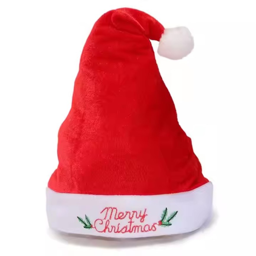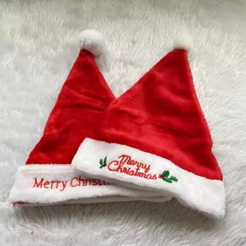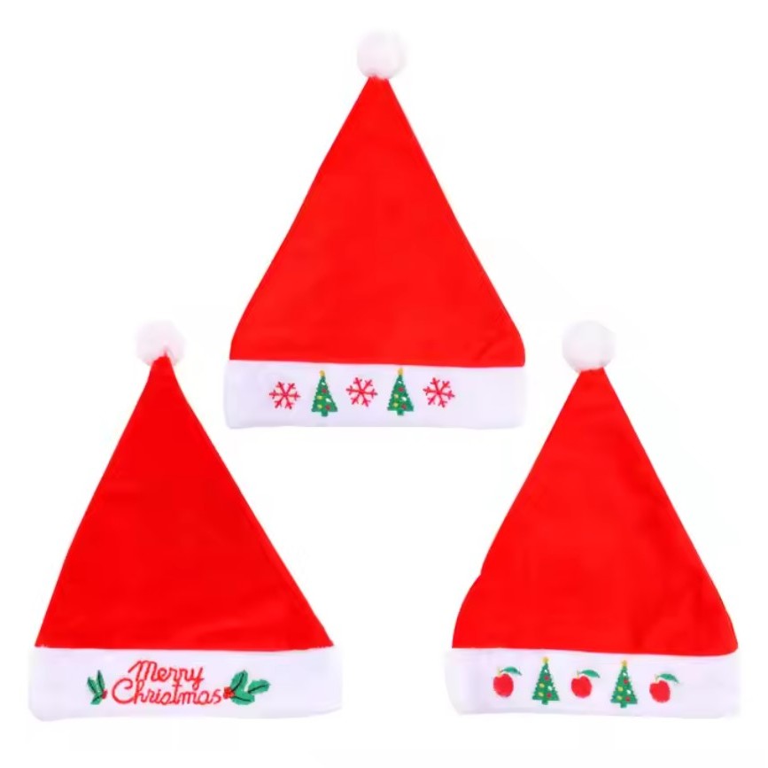Topi Natal Christmas Hat Topi Santa Claus Hat Embroidered Merry Christmas Xmas Hat Bahan Flanel Lembut Plush Christmas O