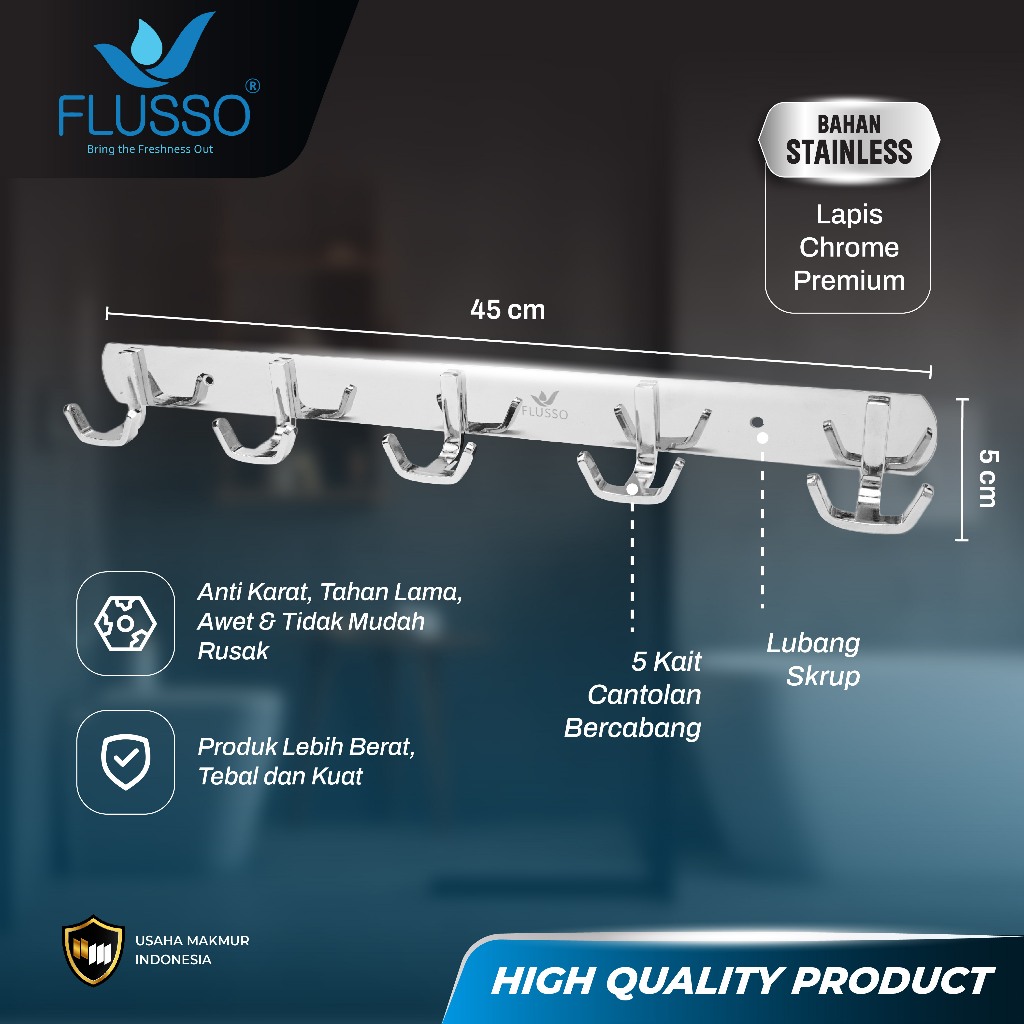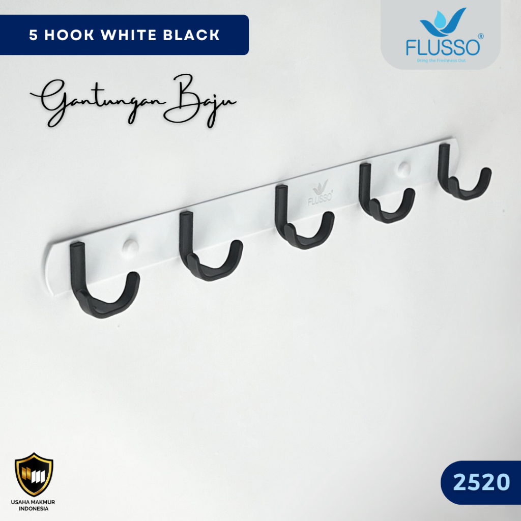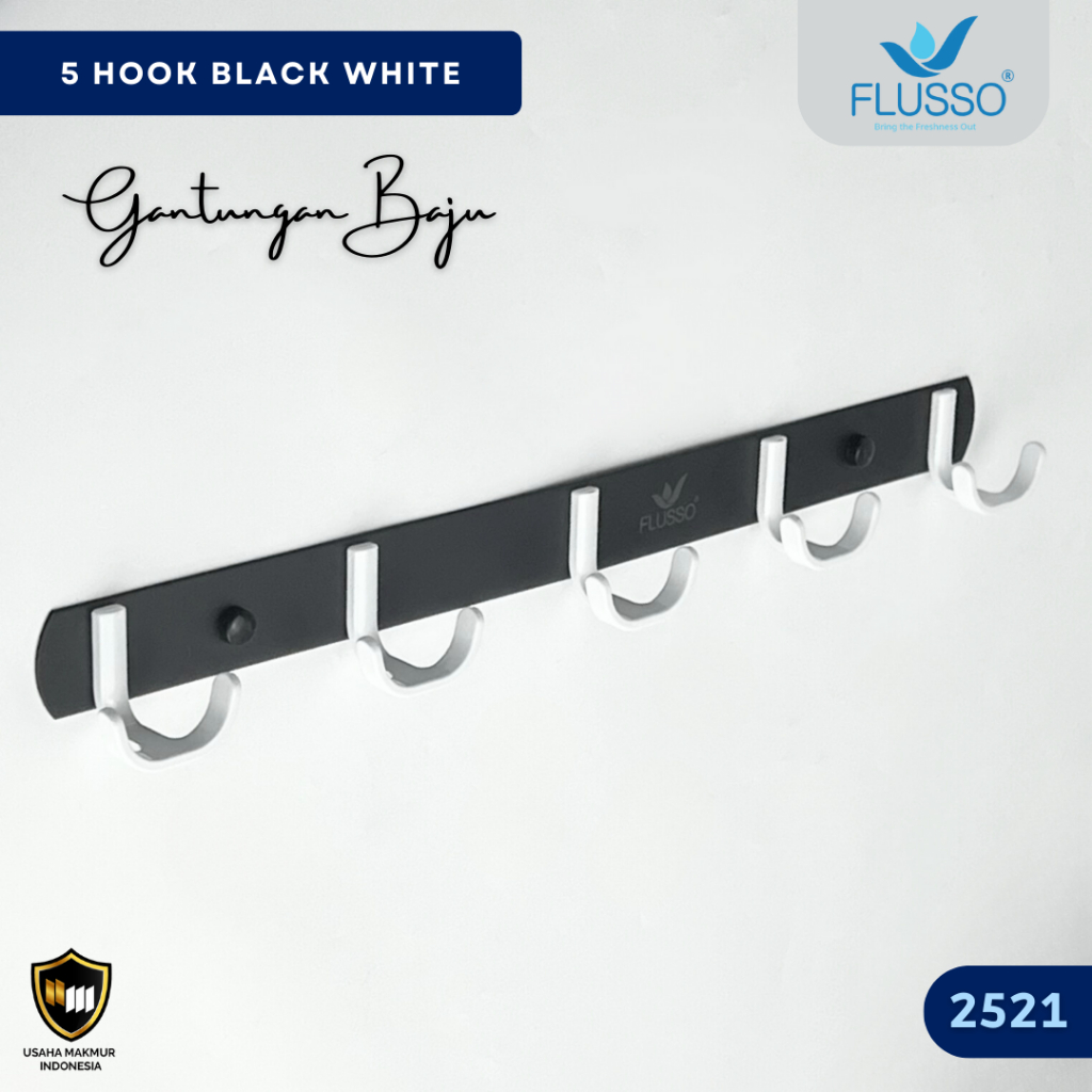 ZENI COLLECTION FLUSSO Kapstok Gantungan Baju 5 Hook Dinding Stainless Steel Kuat Anti Karat 266