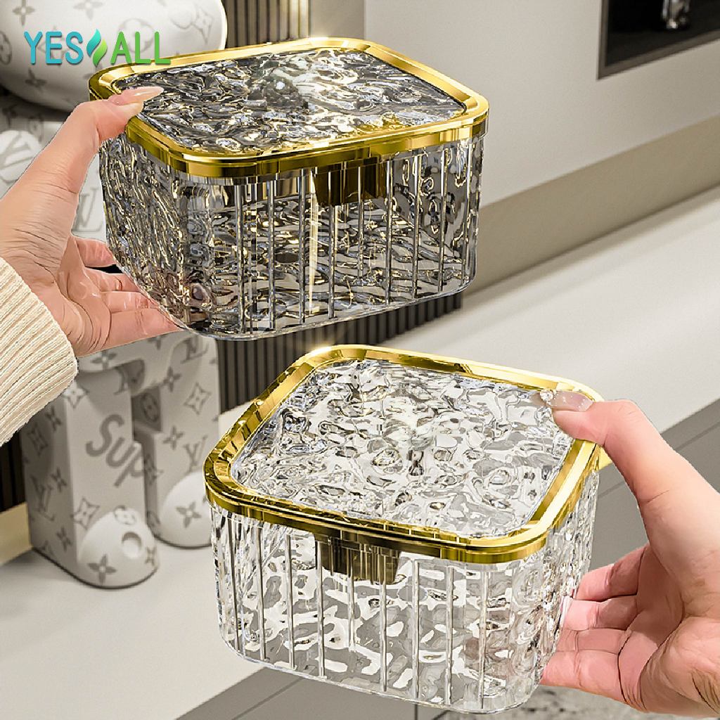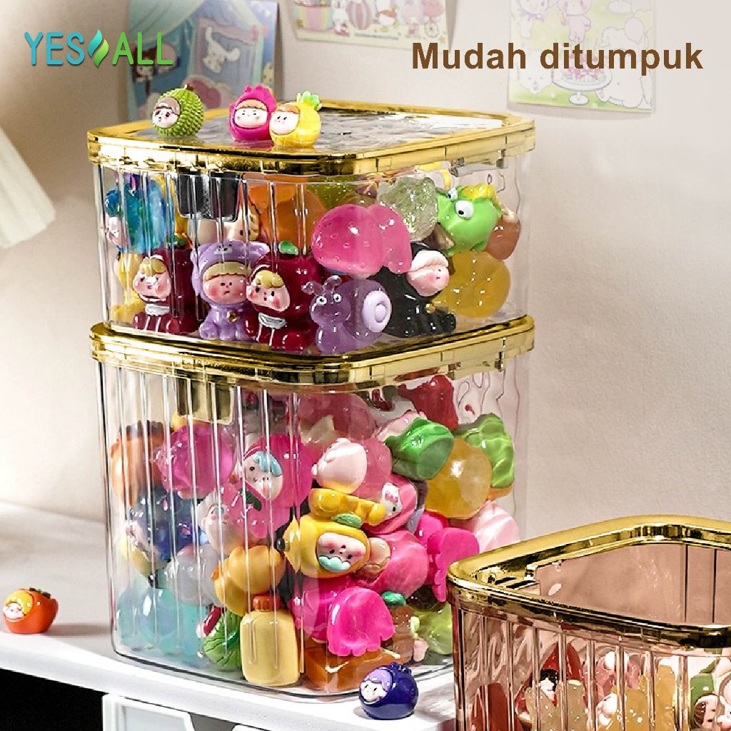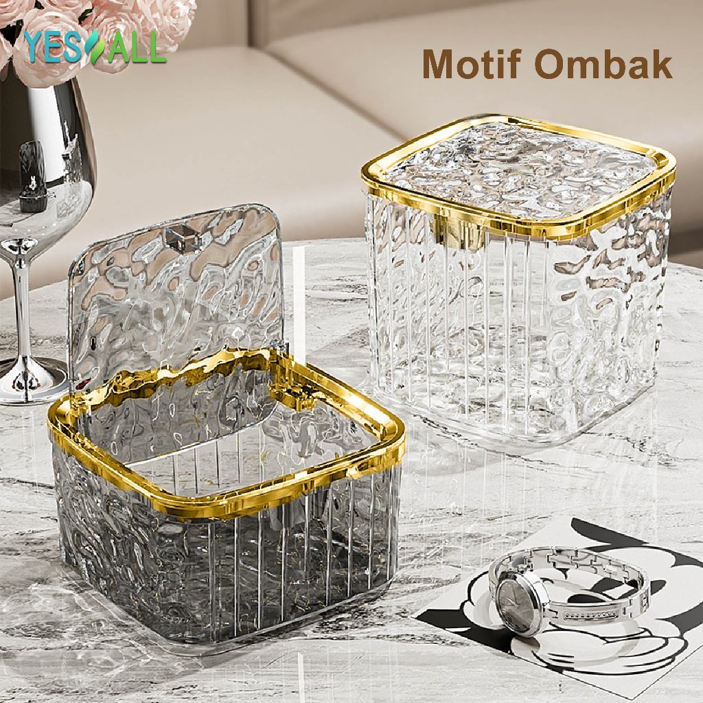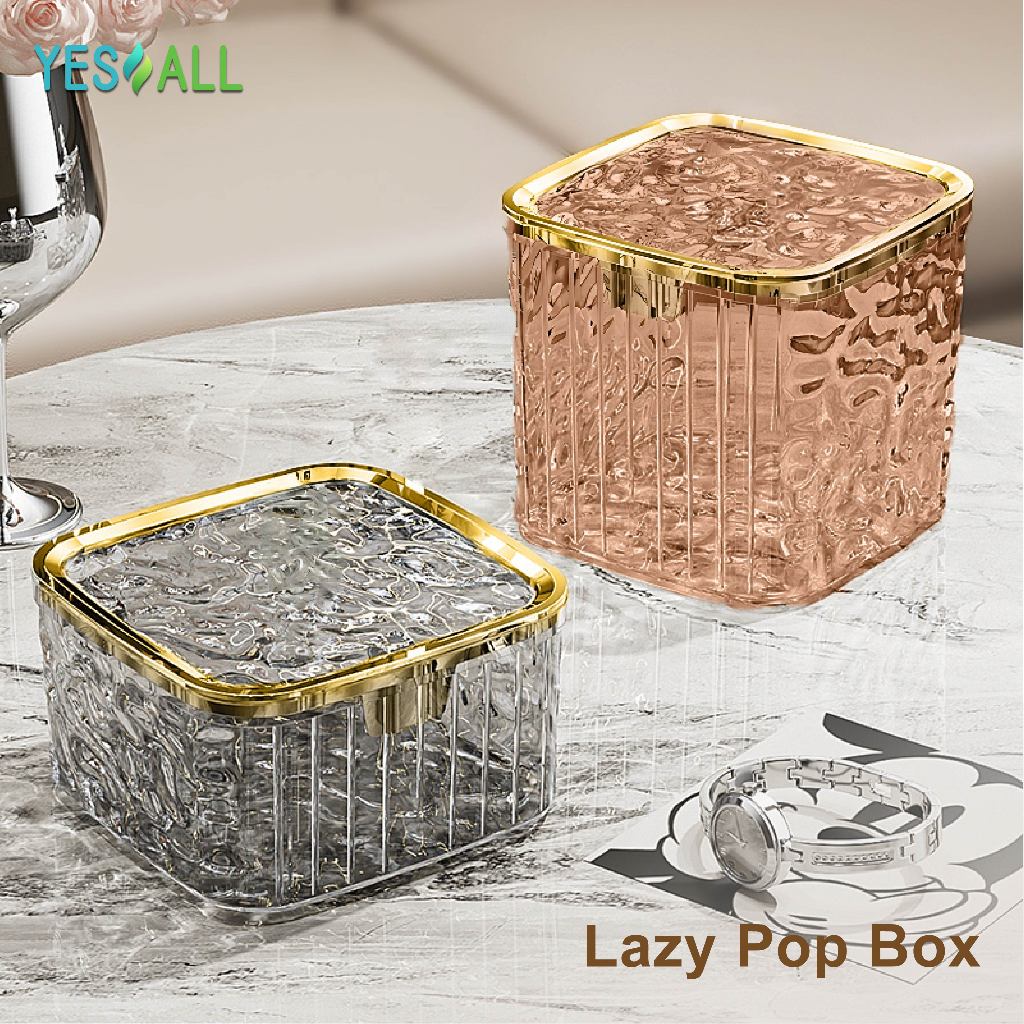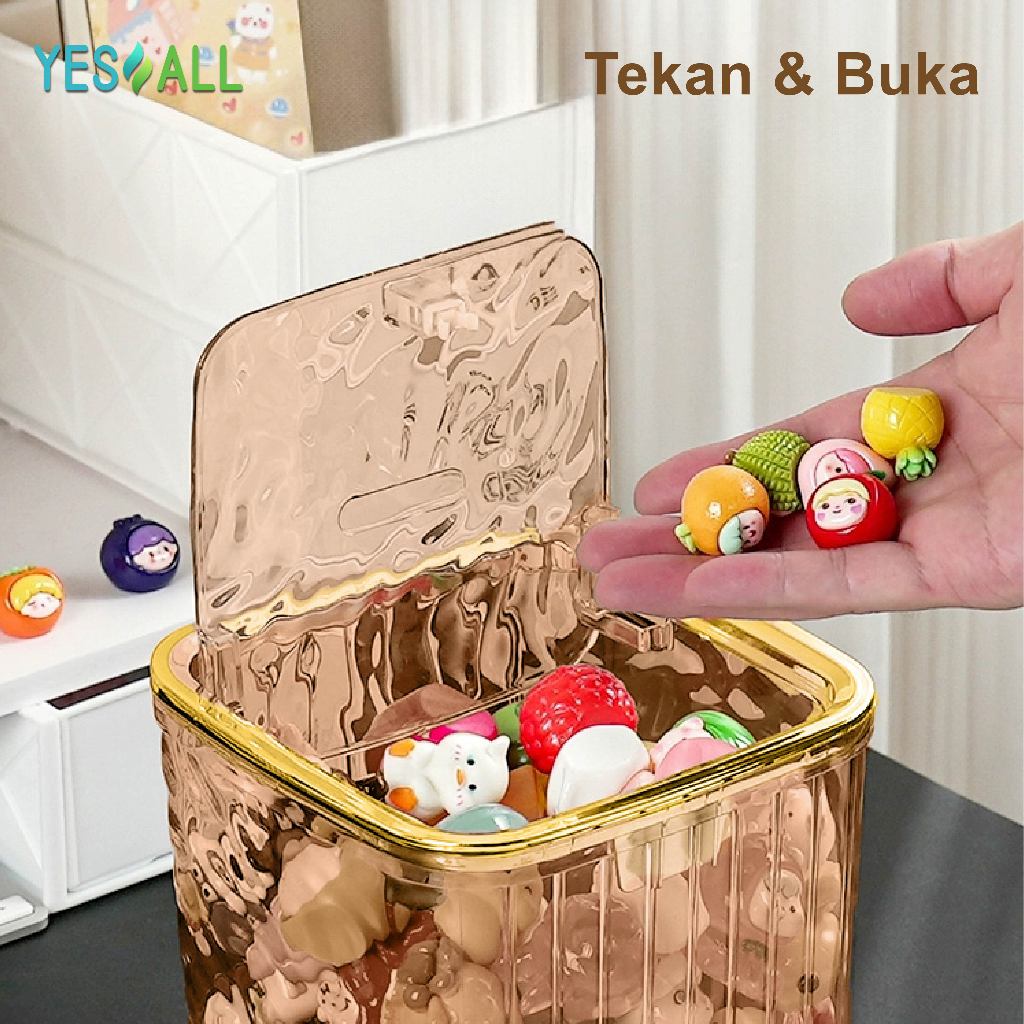 ZENI COLLECTION YESALL Kotak Penyimpanan Tekan Otomatis - Kotak Meja Transparan Estetik Tutup Tekan Rak Organizer Kosmetik / Alat Tulis / Aksesoris