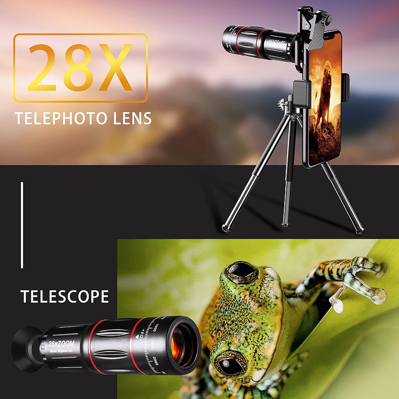 APEXEL 28X Lensa TeleZoom HP Lensa Kamera Universal 18X Bermata HD Lensa Camera HP Dengan Tri