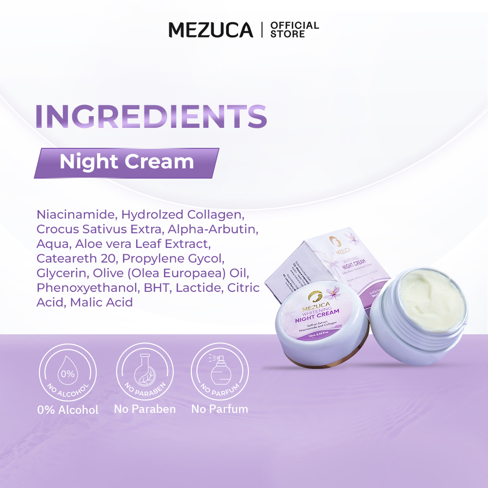 Night Cream Mezuca Krim Malam Mencerahkan Memutihkan atasi Jerawat Bekas Jerawat Flek Hitam di Wajah
