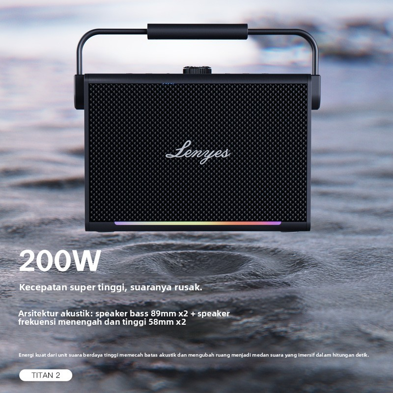 LENYES TITAN 2 200W Outdoor KTV Wireless Speaker + Microphone Karaoke Bluetooth 5.3 High Power Bass Subwoofer RGB Light