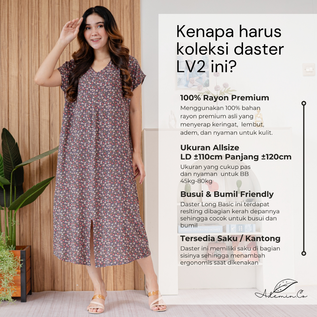 Fashion Lu Store AdeminCo Long Basic Dress Vol 2 Rayon Reactive| Daster Panjang Semata Kaki Busui Bumil Friendly