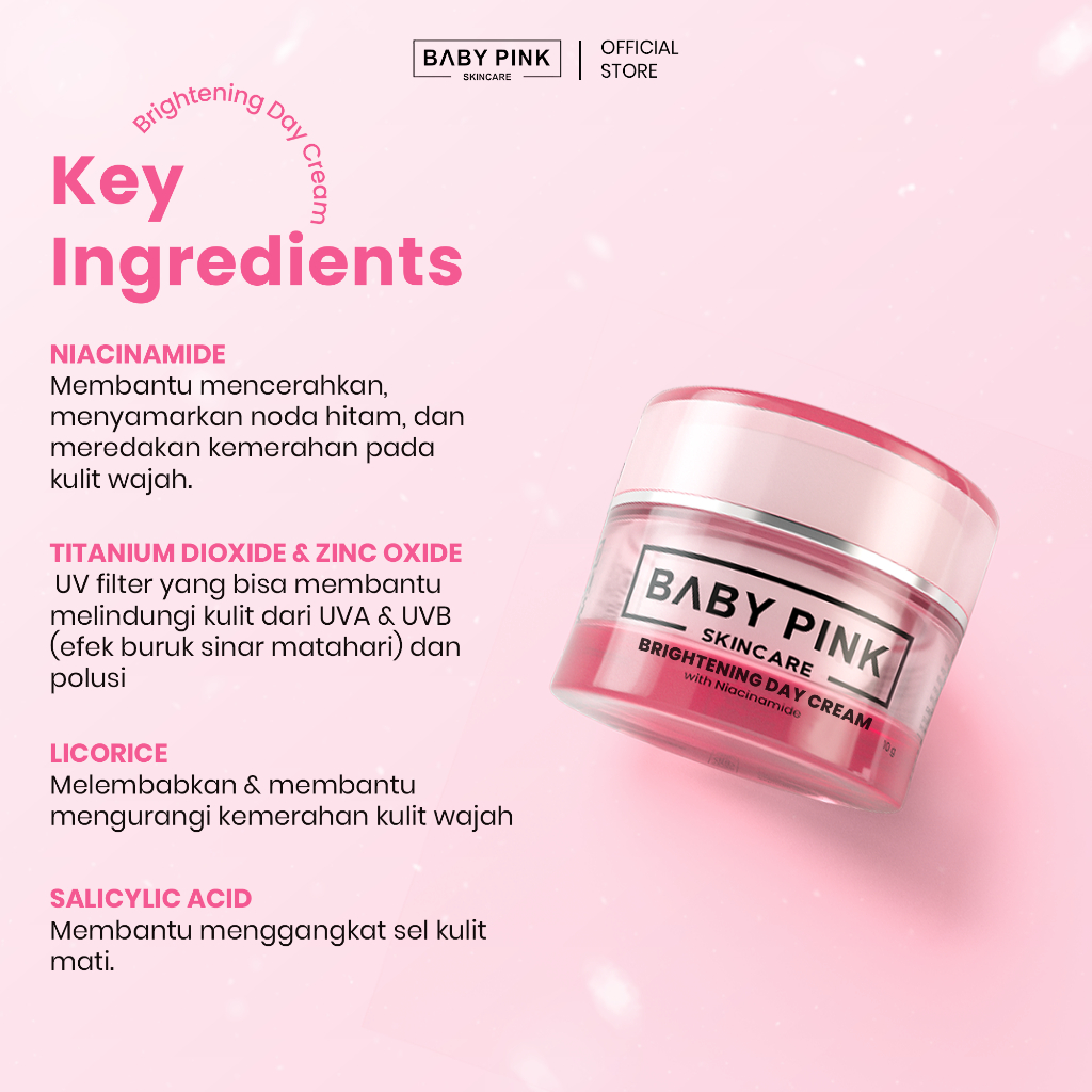 BABY PINK SKINCARE Brightening Day Cream Niinamide 10g untuk kulit cerah & sehat