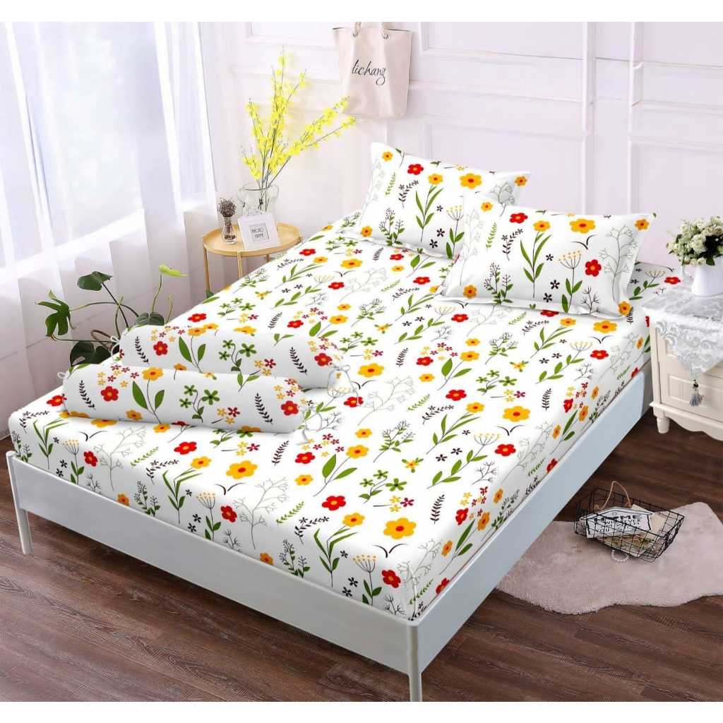 sprei set SARUNG BANTAL GULING MOTIF SERIES BUNGA TINGGI 10CM ANTI LUNTUR UK 180X200