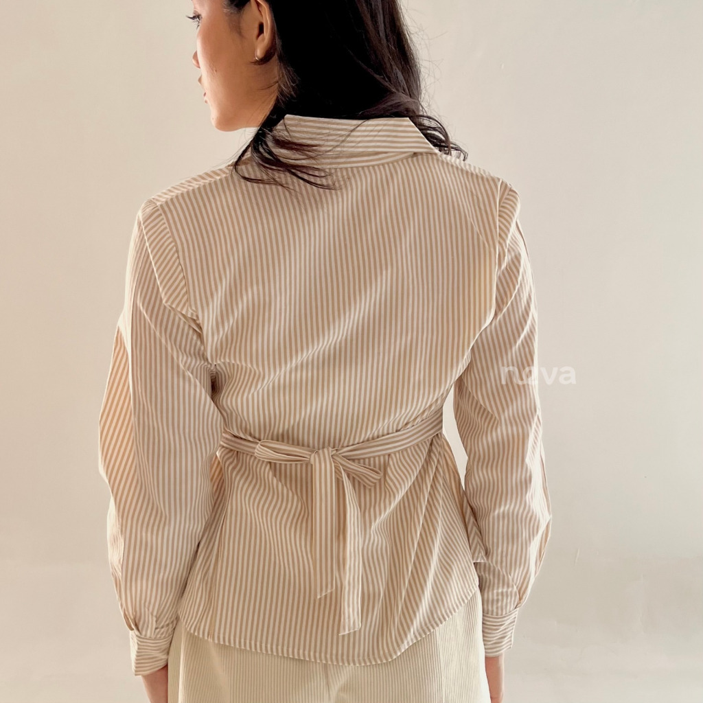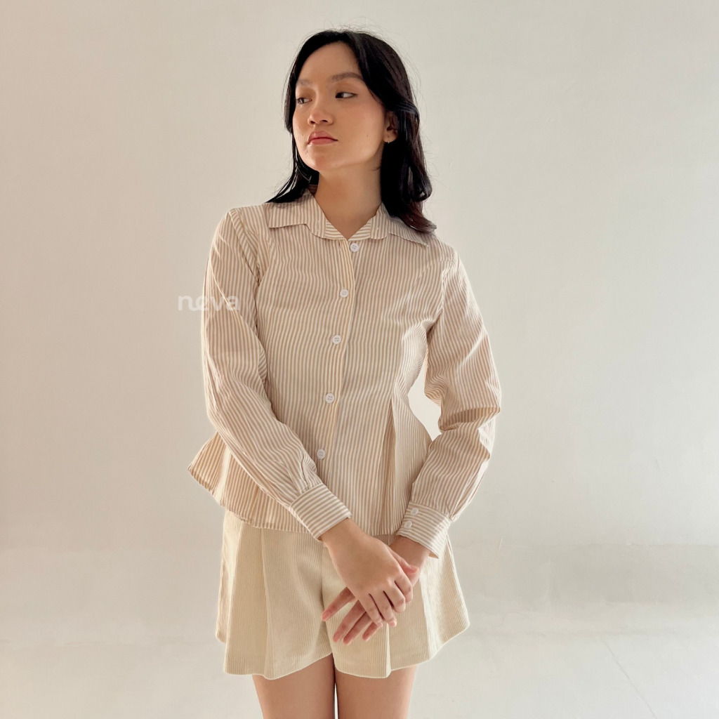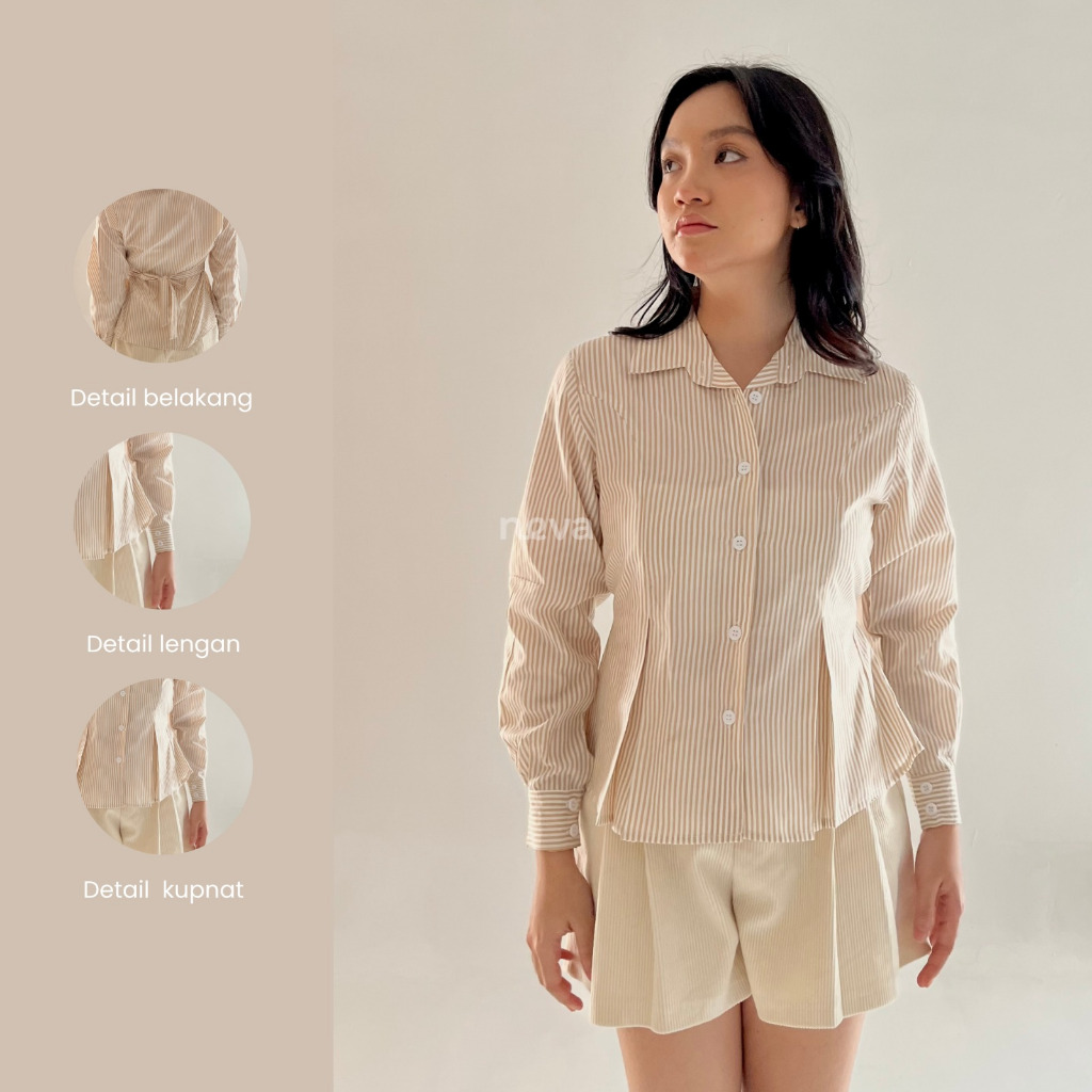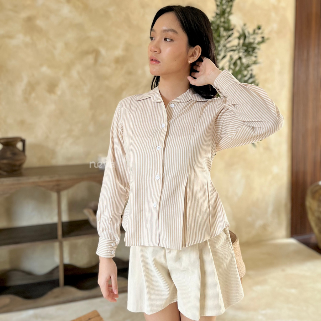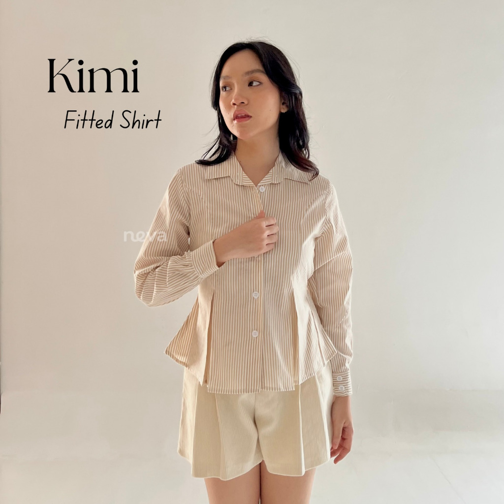 Fashion Lu Store Neva Style - Kimi Fitted Shirt Katun Stripe / Kemeja Kerja Wanita / Blouse Rempel Salur Korean Style