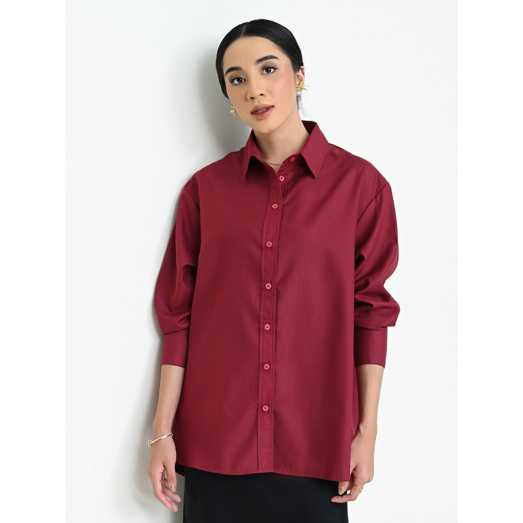 Fashion Lu Store Geulis.id PIPER SHIRT BASIC SERIES / KEMEJA WANITA / ATASAN WANITA / KEMEJA MERAH (16 warna)