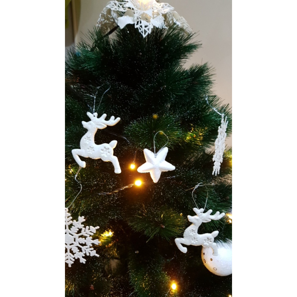 Hiasan Bintang Natal Putih Isi 6-Asesoris Pohon Natal-Hiasan Natal