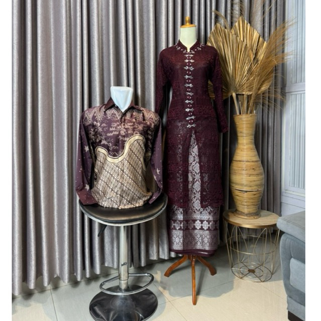 aywears - Set Pasangan Kebaya Malika burgundy dan kemeja batik lengan panjang
