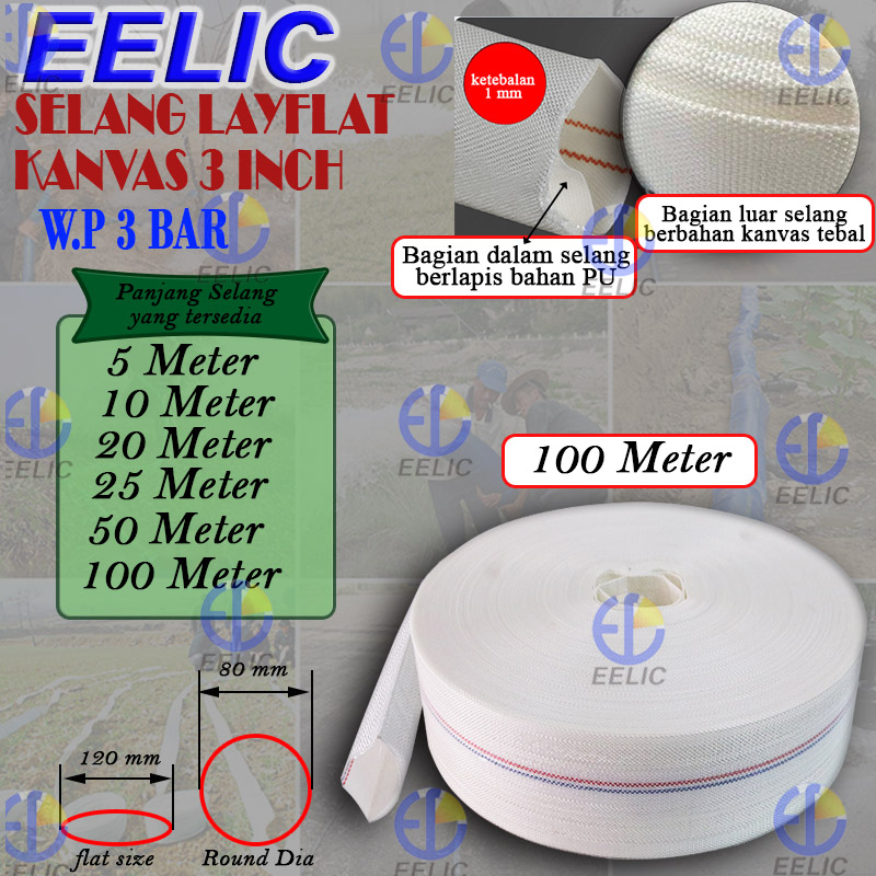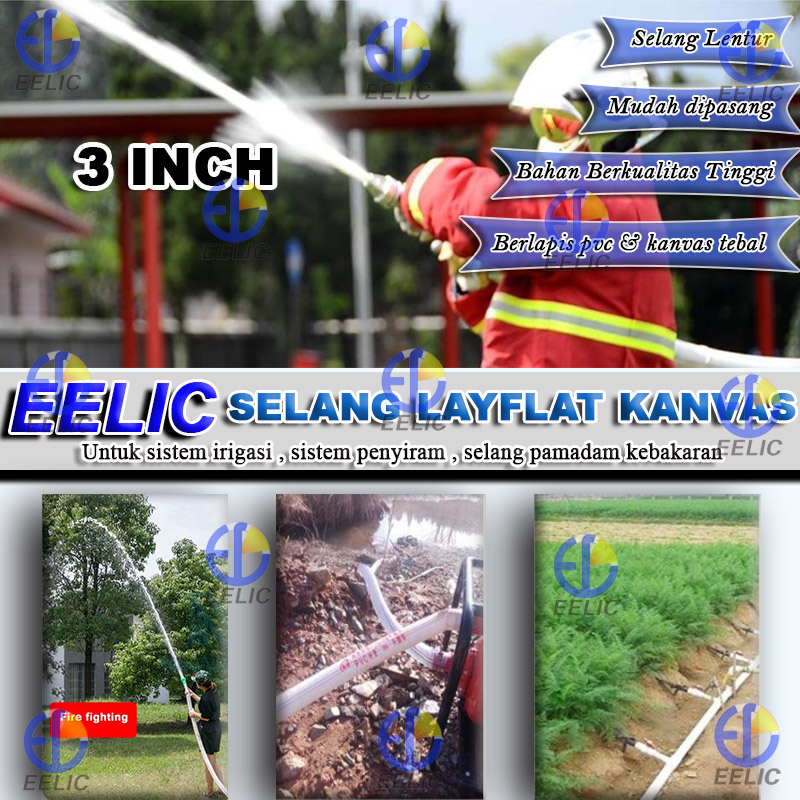EELIC SEA-RJ3INCH 100meter Selang Air Layflat Kanvas Fire Hose Untuk Pemadam Kebakaran Dan Sistem Irigasi 3 inch - Dpm96