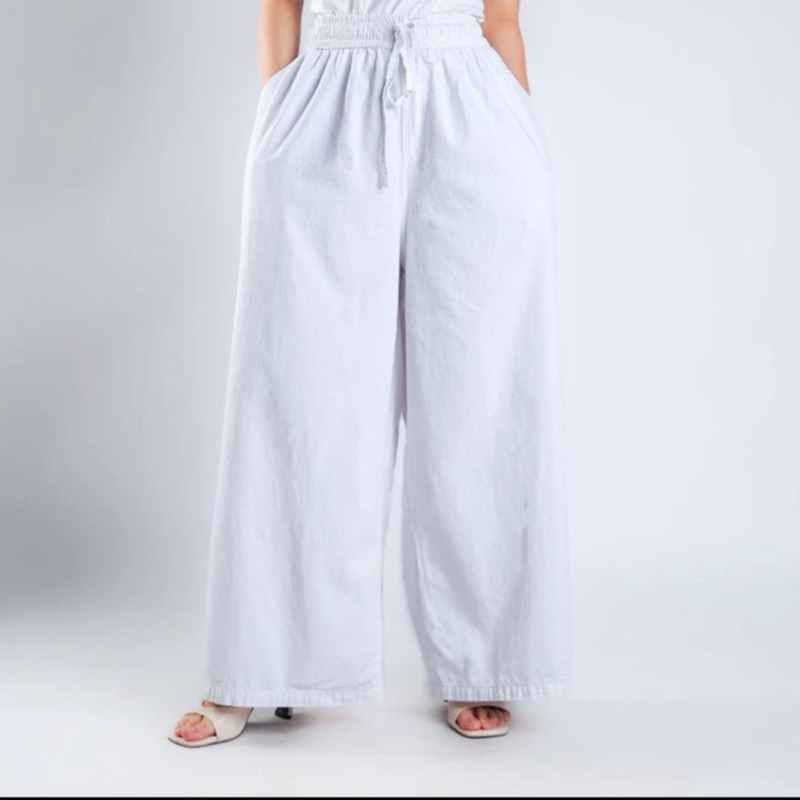 Fashion Lu Store Celana Kulot Highwaist Panjang Jeans Wanita Fit XXL Bigsize Jumbo Pinggang Karet DLINE Coco Culotte