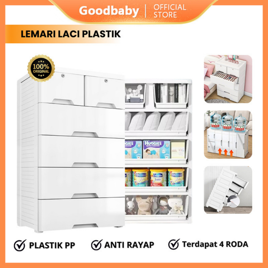 Goodbaby | Lemari Pakaian Putih Plastik - Lemari Jumbo Laci Plastik - Laci 3 4 5 6 Susun Putih