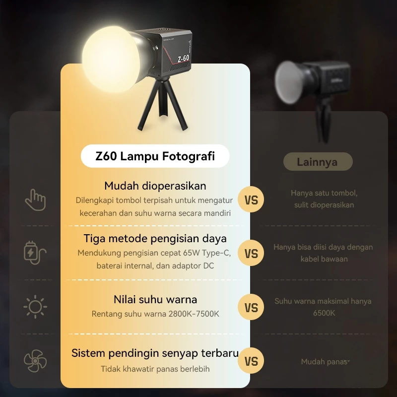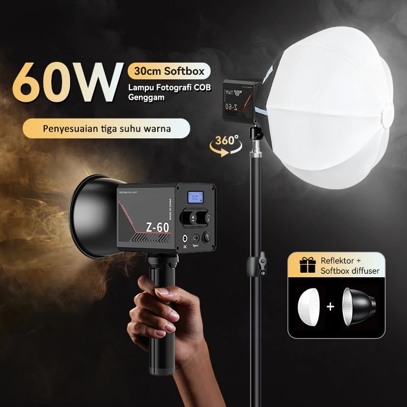 Z60 Rechargable LED Video Light Portable Softbox Lighting Professional Fotografi Light 2800K-7500K Studio Lampu Live Str