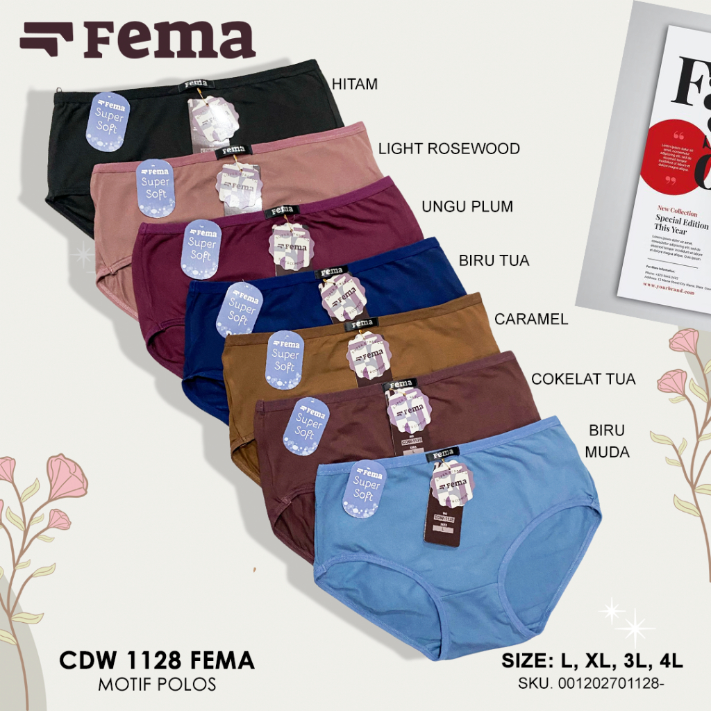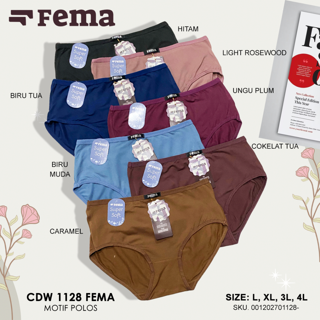 Fashion Lu Store FEMA Official Shop 3,6,12 pcs Celana Dalam Wanita 1128 Polos