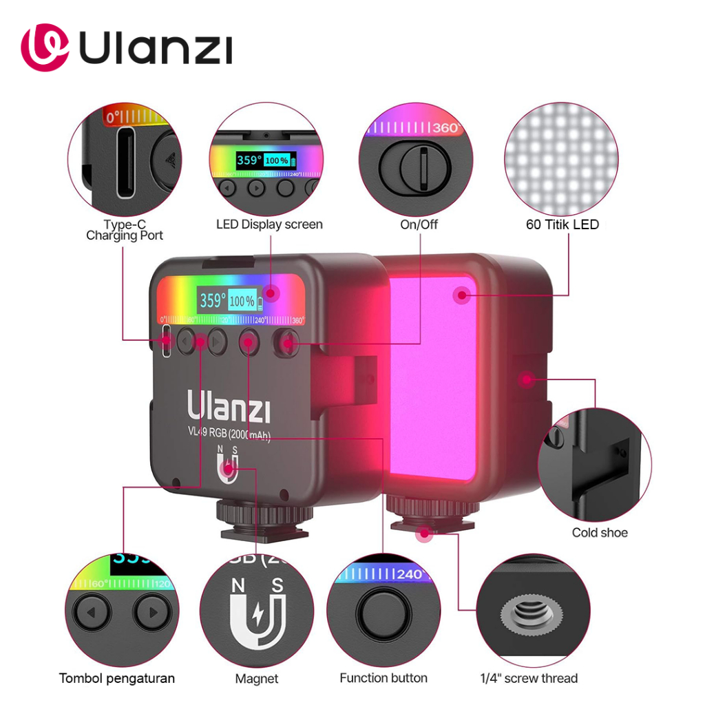 ULANZI VL-49 RGB Lampu LED Mini Video Light for Camera Smartphone