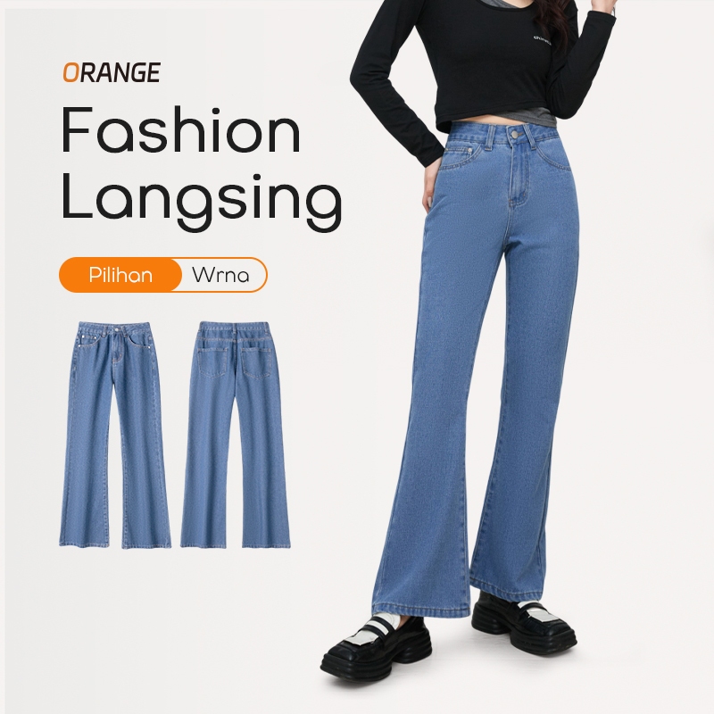 Fashion Lu Store celana jeans wanita terbaru korean style highwaist kasual berkobar celana wanita kualitas kekinian celana jeans wanita