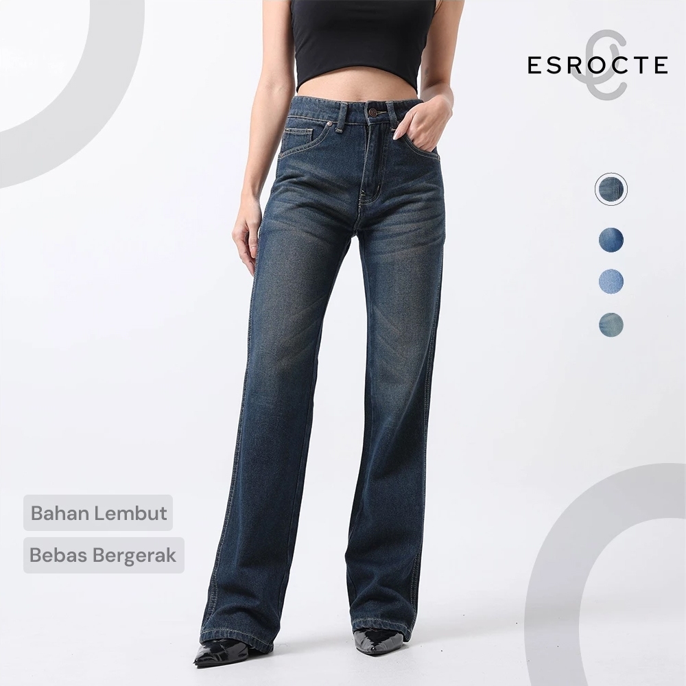 Fashion Lu Store ESROCTE Naia Pants | Celana Loose Jeans High-Waist Wanita –Whisker Spray Edition– 26–38