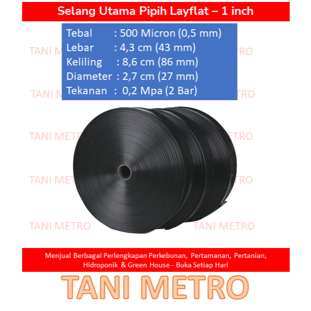 100 meter Selang Pipih Selang Utama Layflat Hose Sunny Hose 1" 1,25" 1,5" 2" 2,5" 3" 4" - Dpm96
