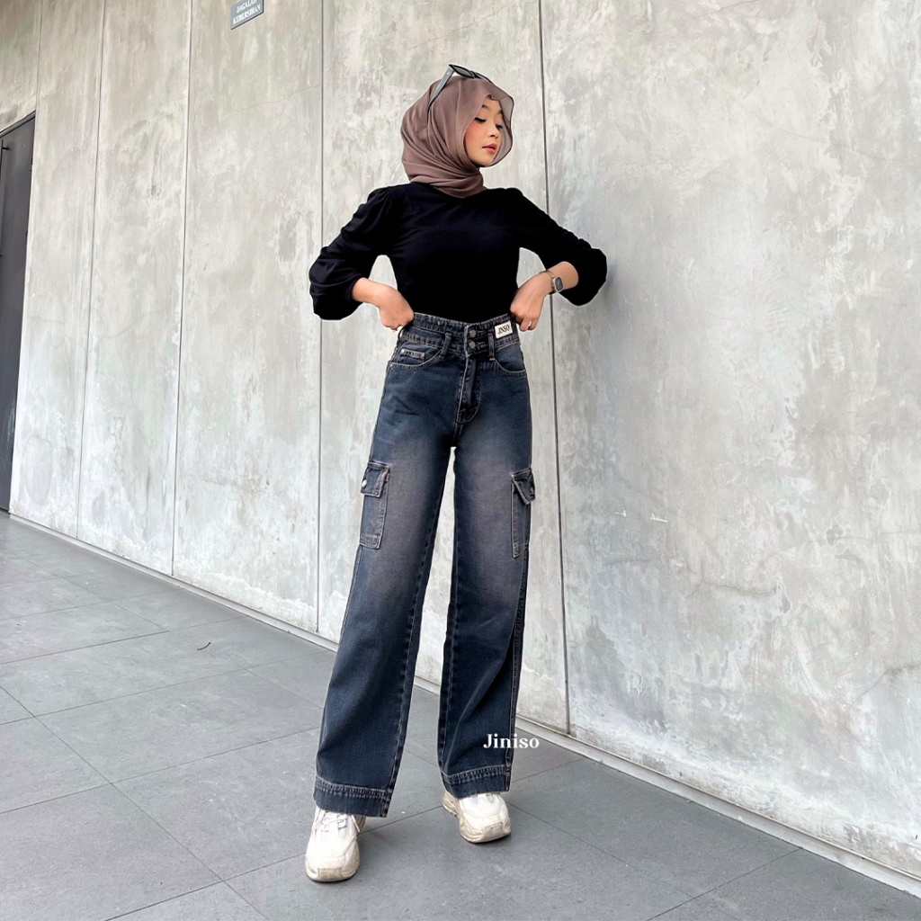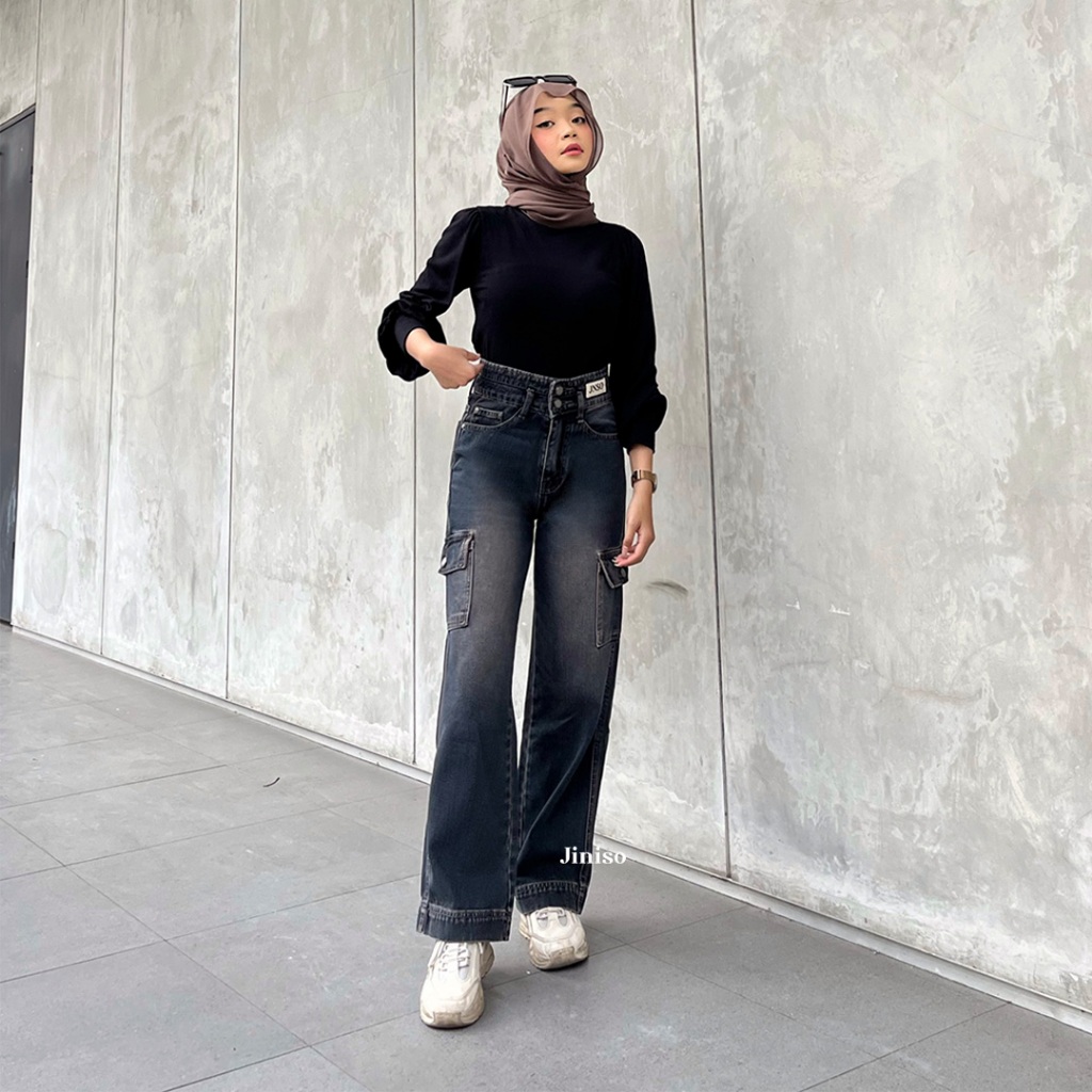 Fashion Lu Store Highwaist Cargo Loose Jeans 463 FEARLESS