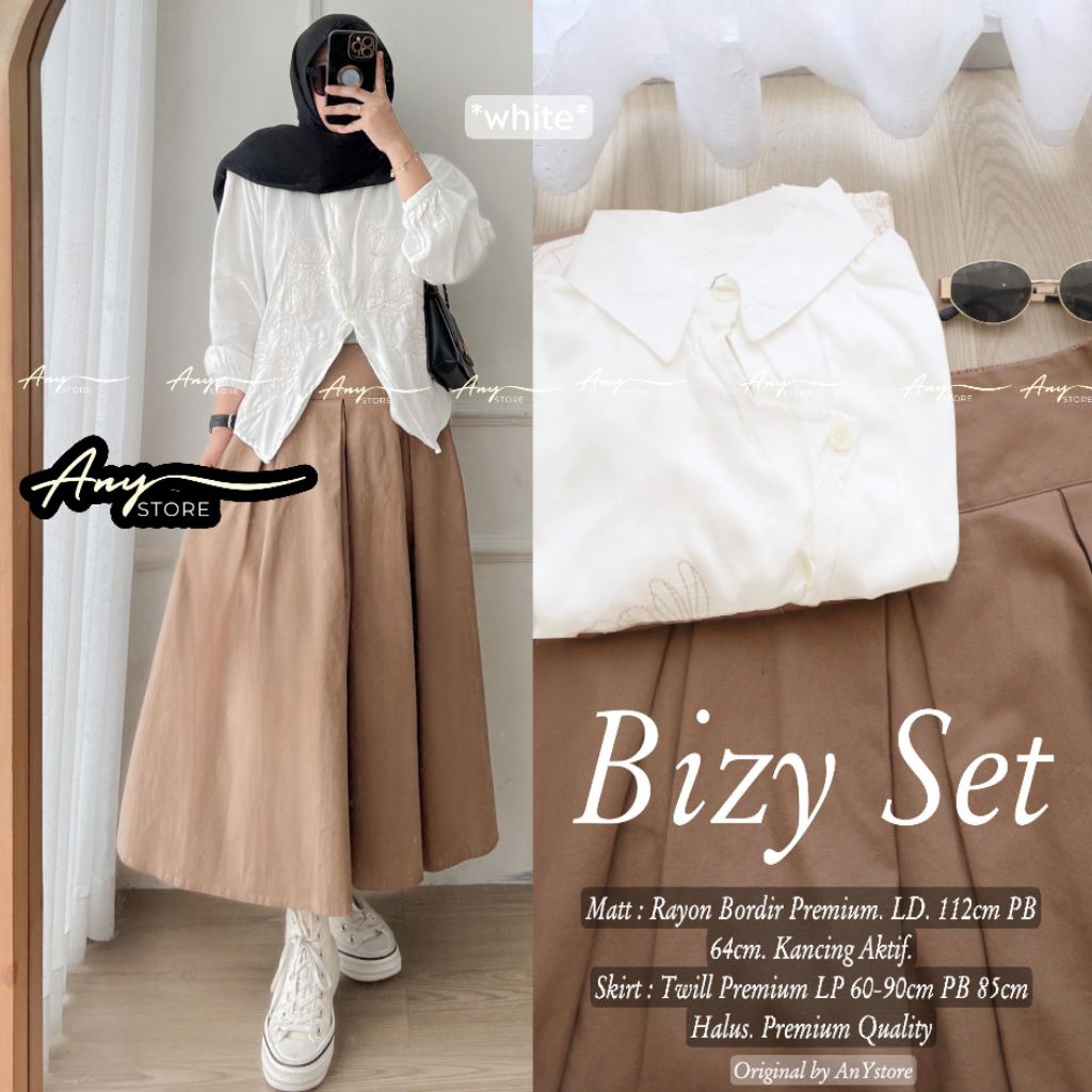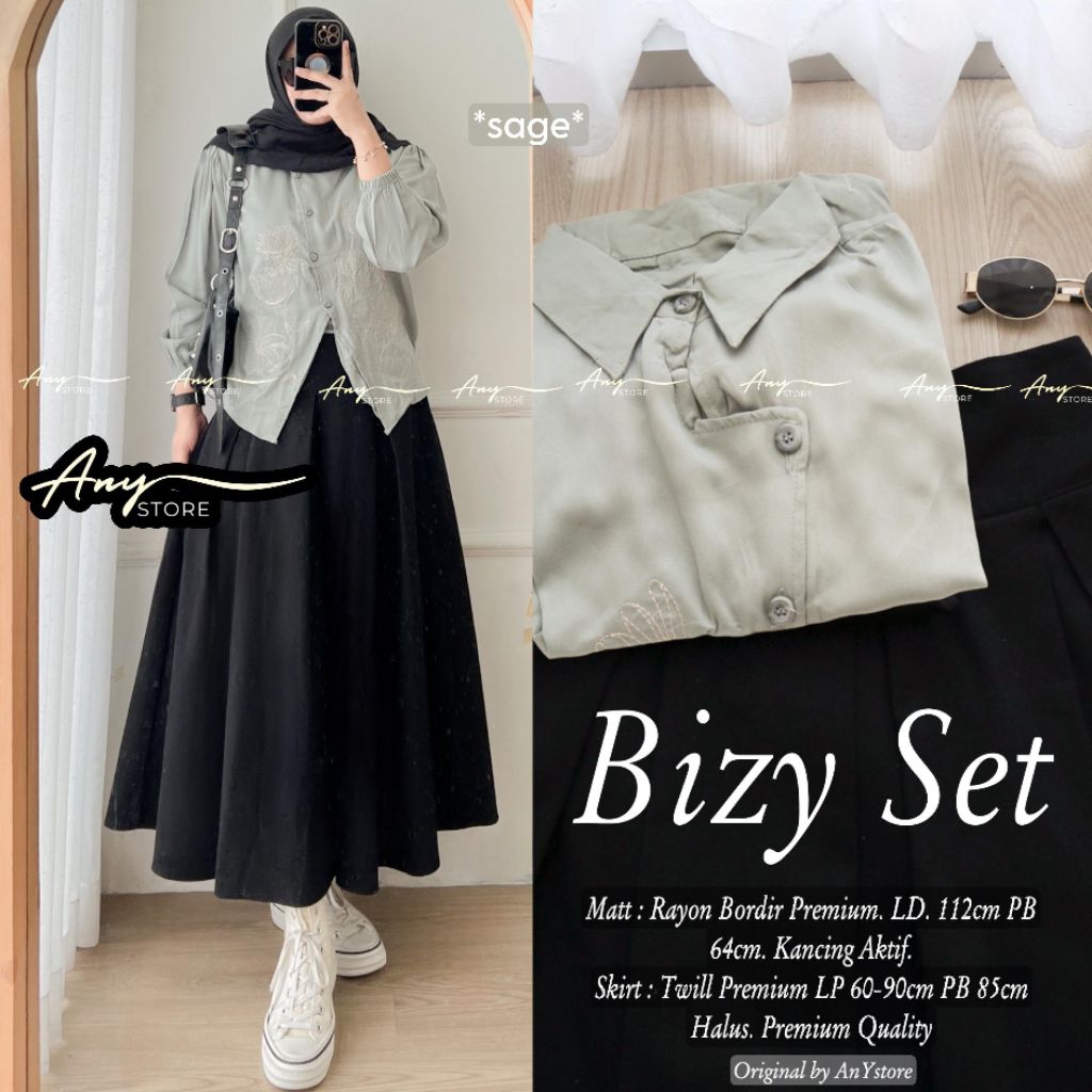Bizy Set setelan Atasan rayon bordir premium dan rok panjang twill premium outfit kampus kerja syari kekinian daily set rok one set wanita By ANY
