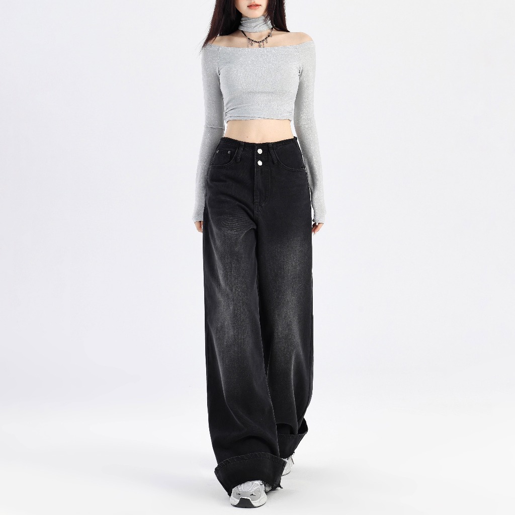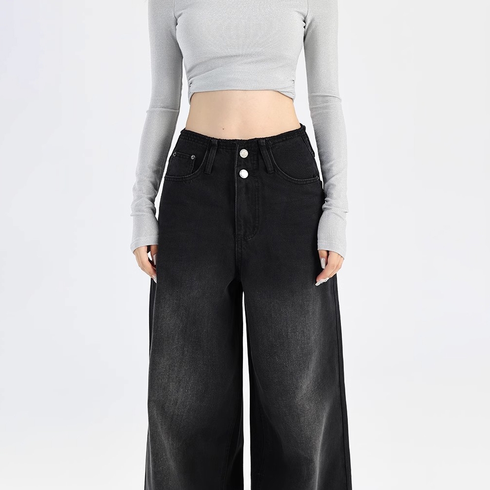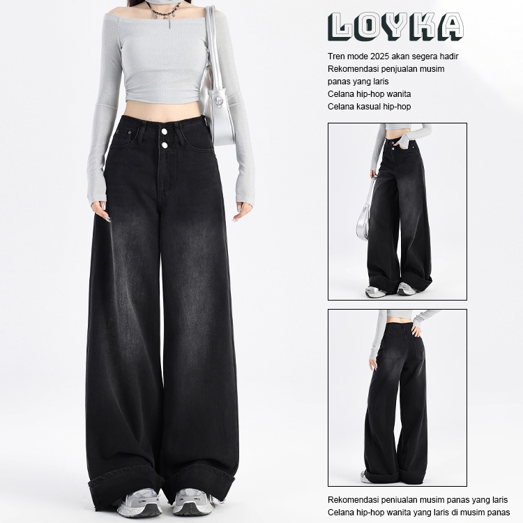 Fashion Lu Store Loyka Celana Highwaist Celana Hitam Panjang Wanita Celana Baggy Pants Celana Kulot Jeans Wanita OOTD / Baggy Jeans Wanita
