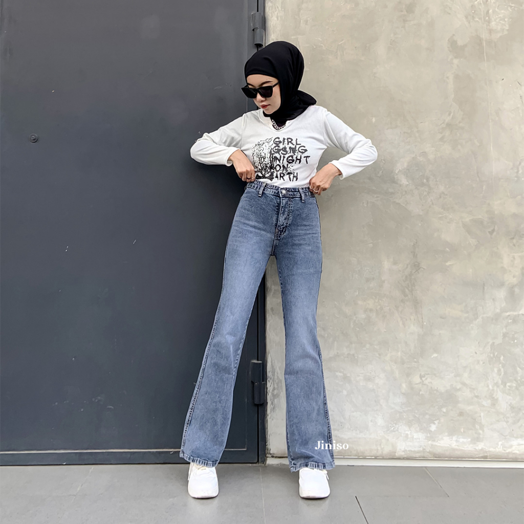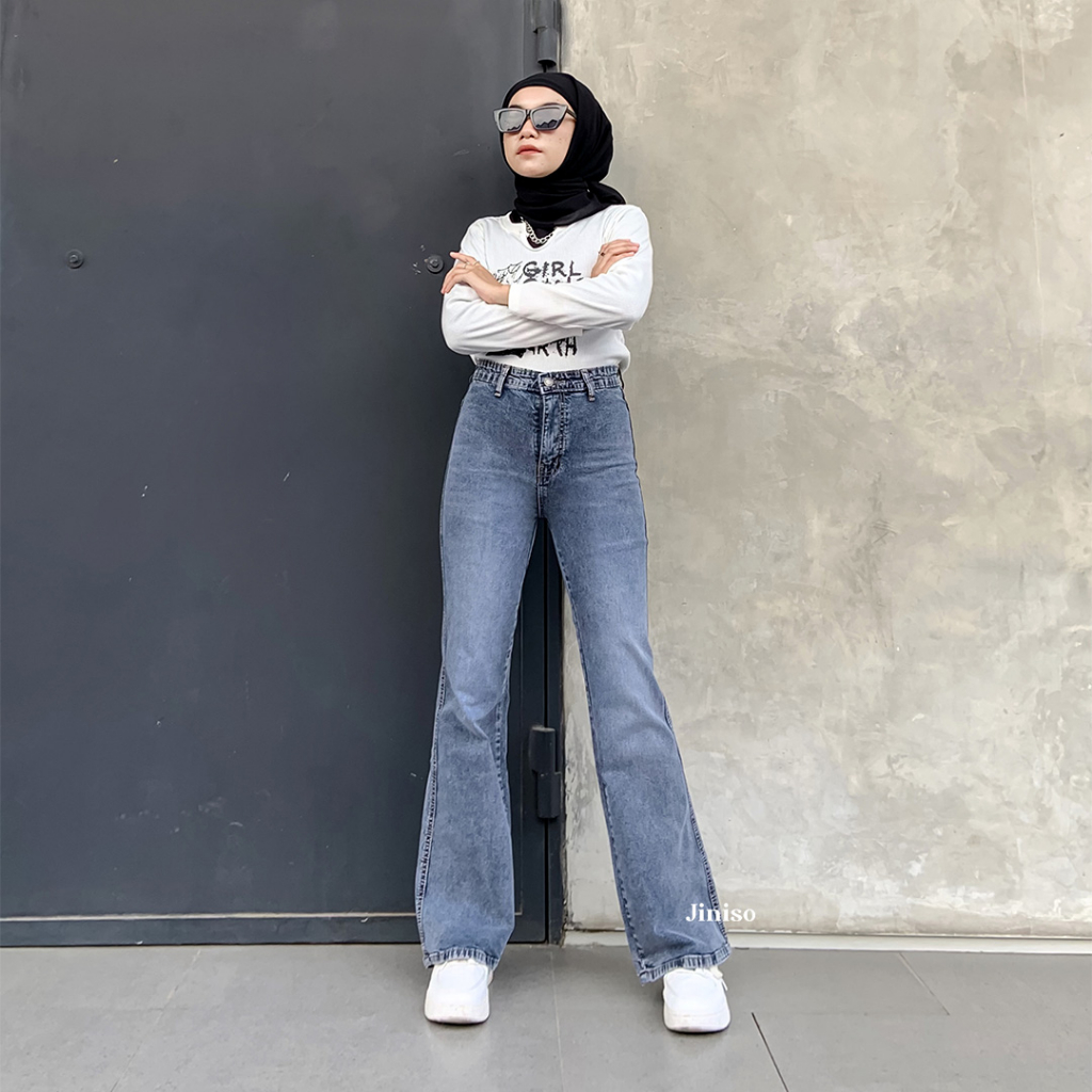 Fashion Lu Store Highwaist Stretch Cutbray Jeans 522 HANGOUT