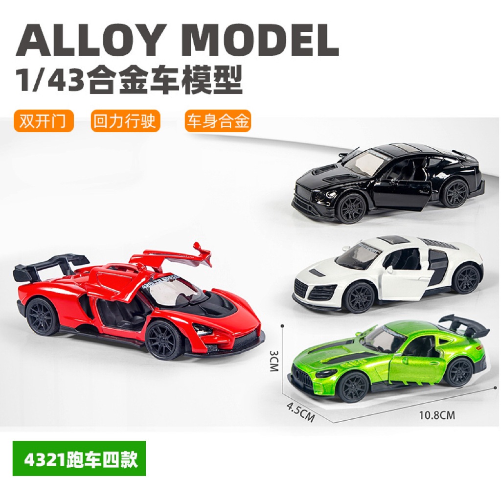 Diecast 1:43 Mobil Racing Car Alloy Metal Pullback Pintu bisa buka model GTR AUDI MercedezBenz McLaren Porsche Bugatti F