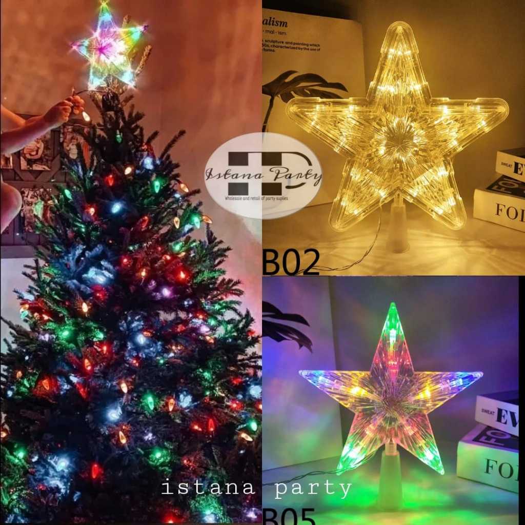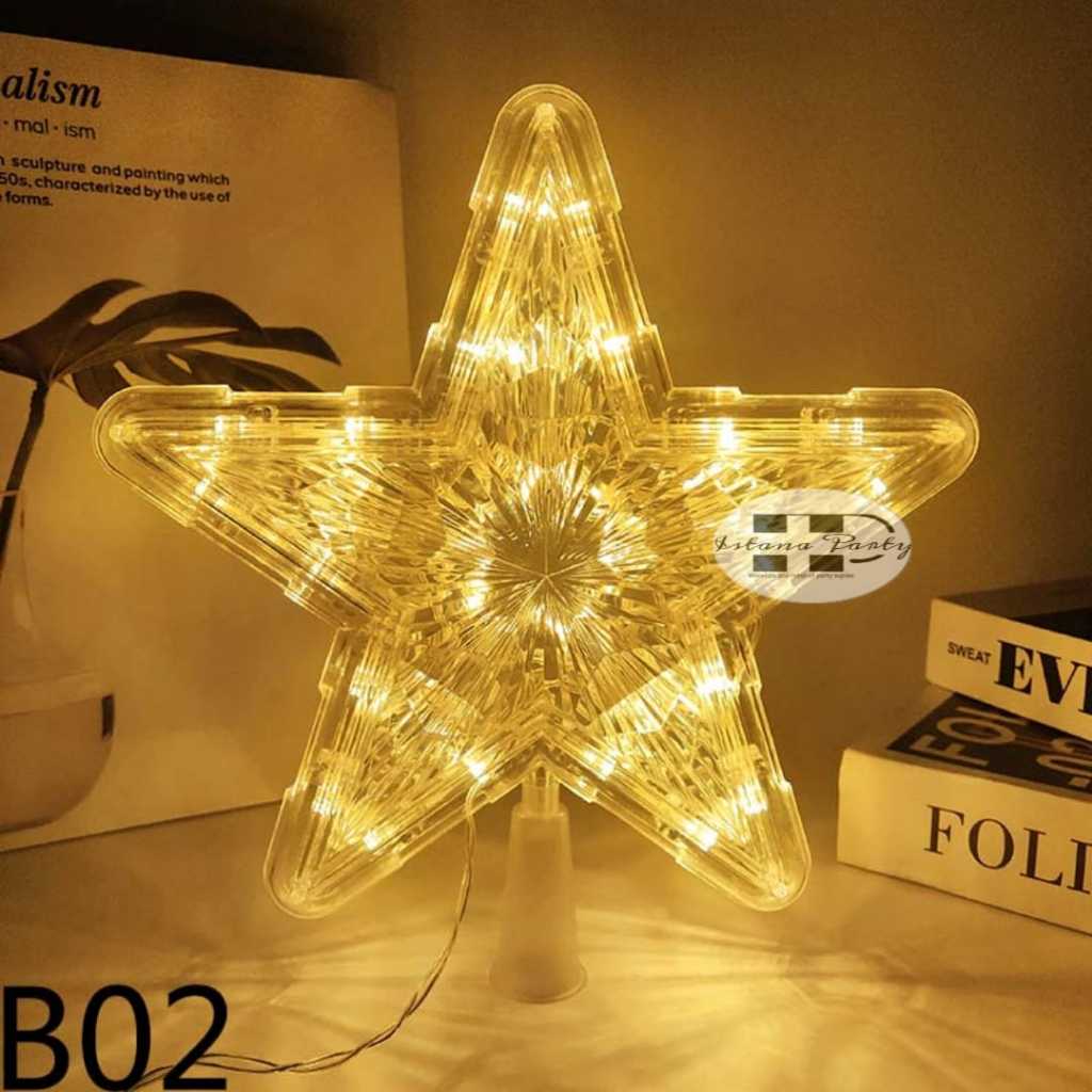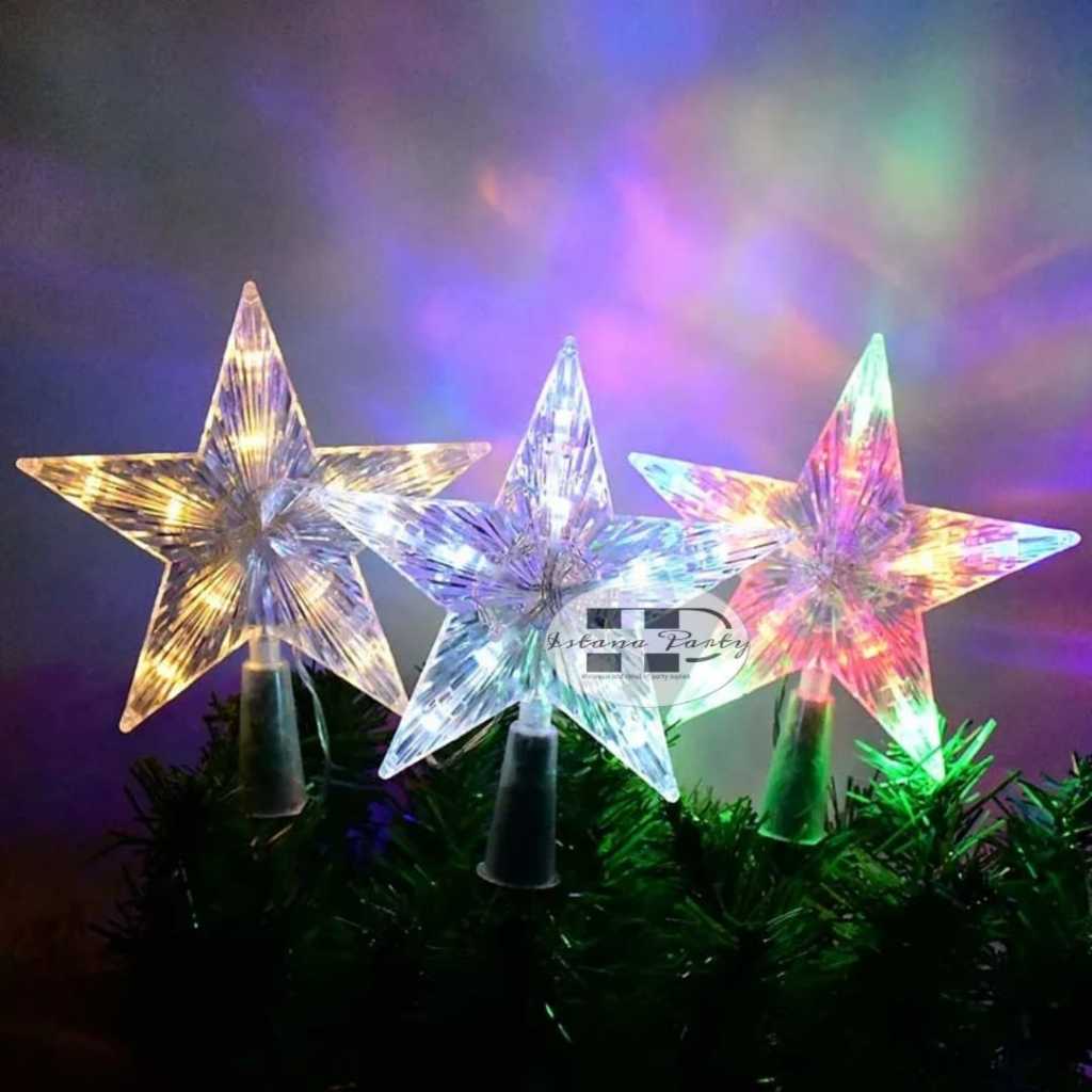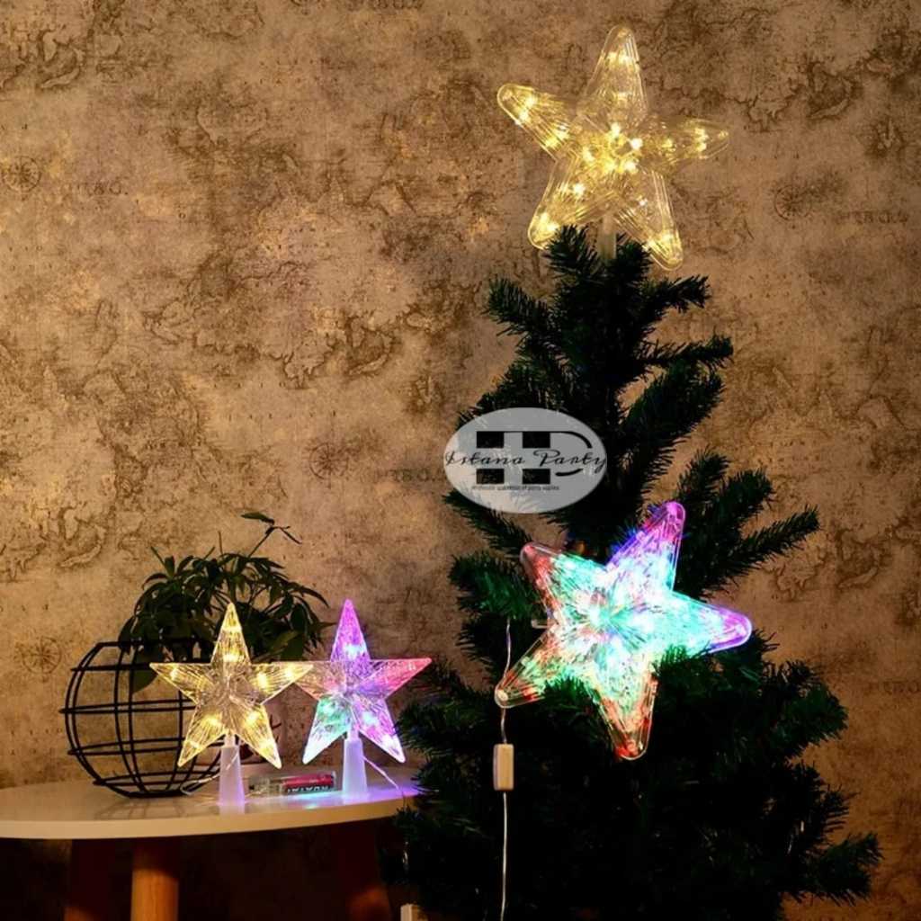 hiasan ujung pohon natal / dekorasi natal bintang led 15 cm 10 led
