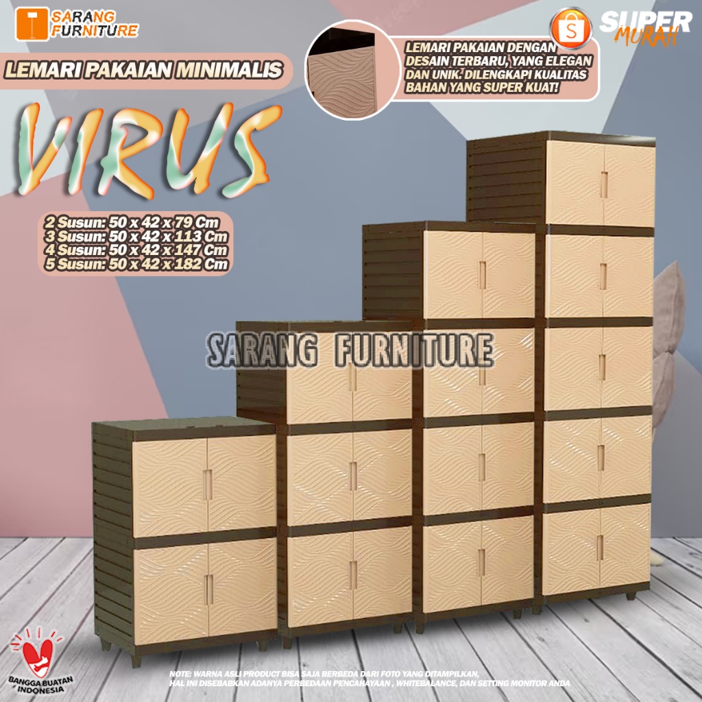 LEMARI PLASTIK VIRUS KINGDOM 4 SUSUN LEMARI PAKAIAN MINIMALIS CABINET SERBAGUNA - CREAM