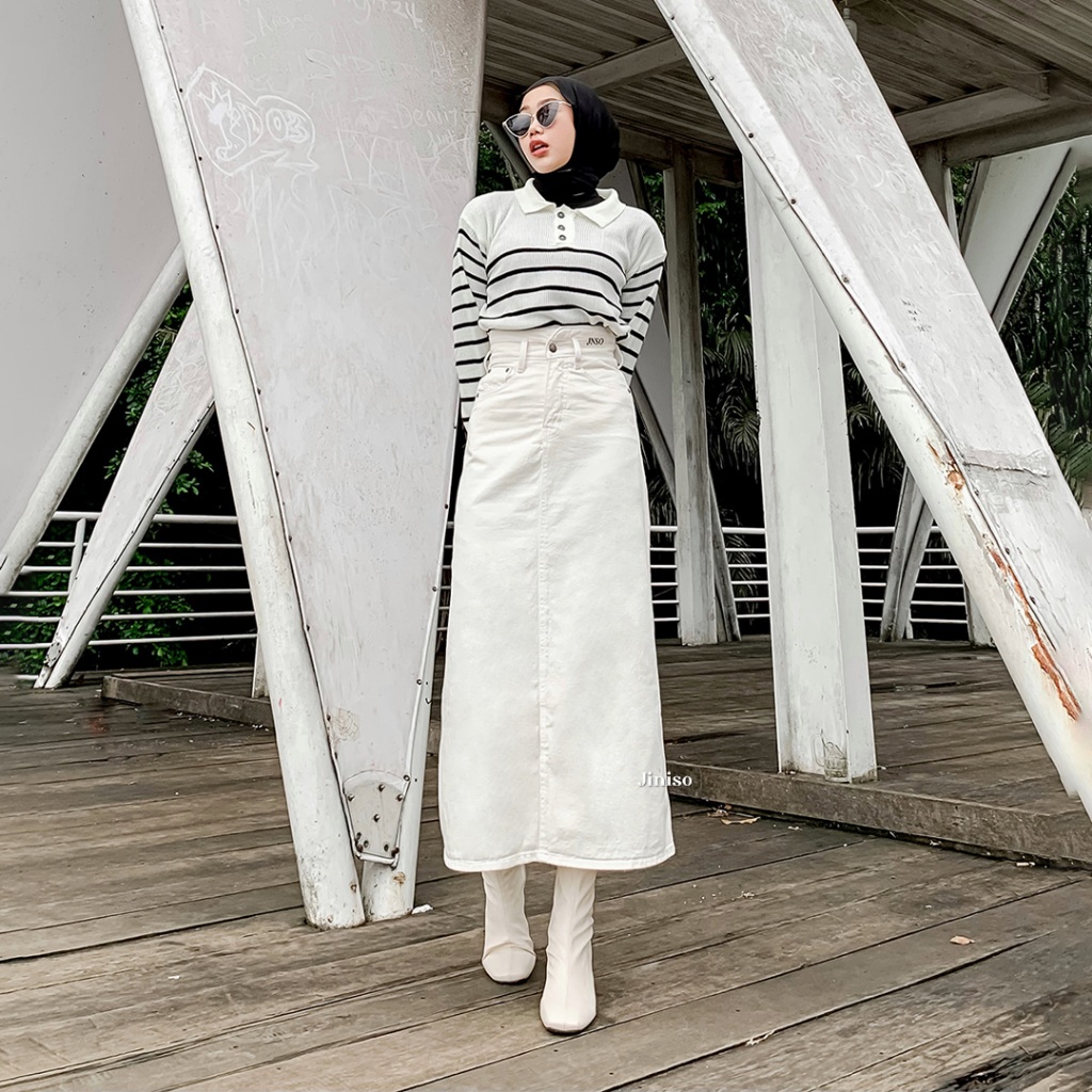 Fashion Lu Store Highwaist Rok Slit Jeans Panjang 901 SEVENTY