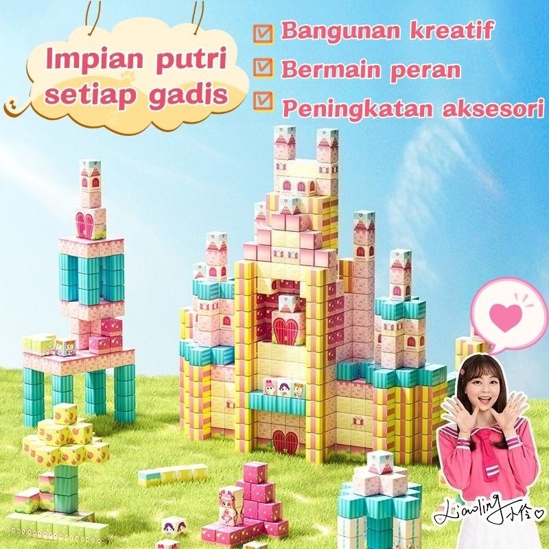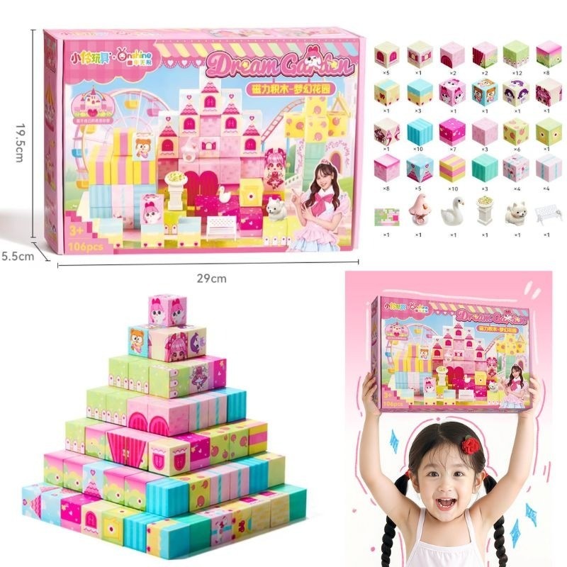 【Penjual Lokal】106PCS Taman Impian Baru 3D Puzzle Balok Balok Susun Edukatif Montessori Blok Set Kuromi/labubu/TungTung