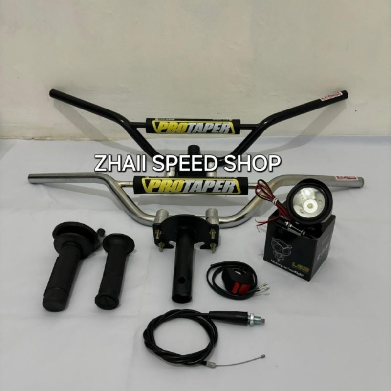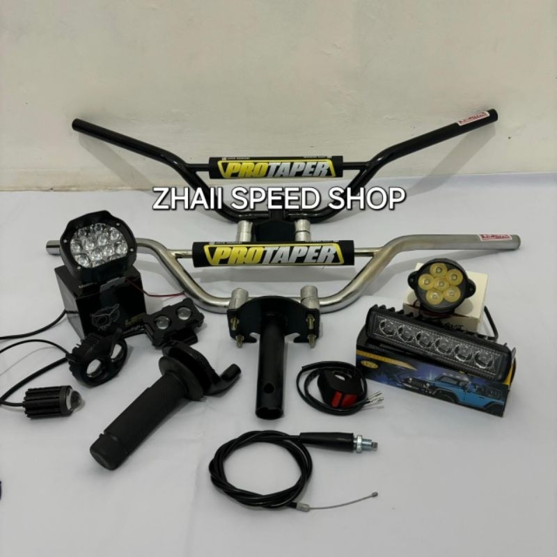 PAKETAN STANG STIR TRAIL PROTAPER ADAPTOR GASSPONTAN POLOS LAMPU SOROT FREE SAKLAR ON OFF STANG UNIVERSAL