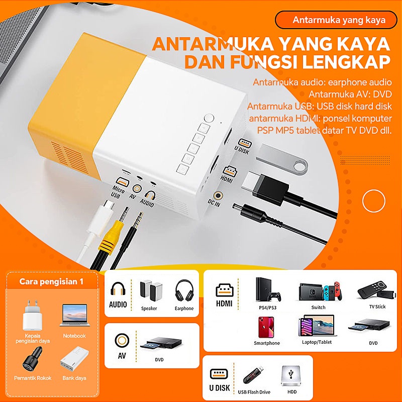 YINPAGE-Smart Projector/Proyektor Mini Teater Rumah Kecerahan Ultra HD 1080P Portable Mendukung Proyeksi Ponsel Cocok un