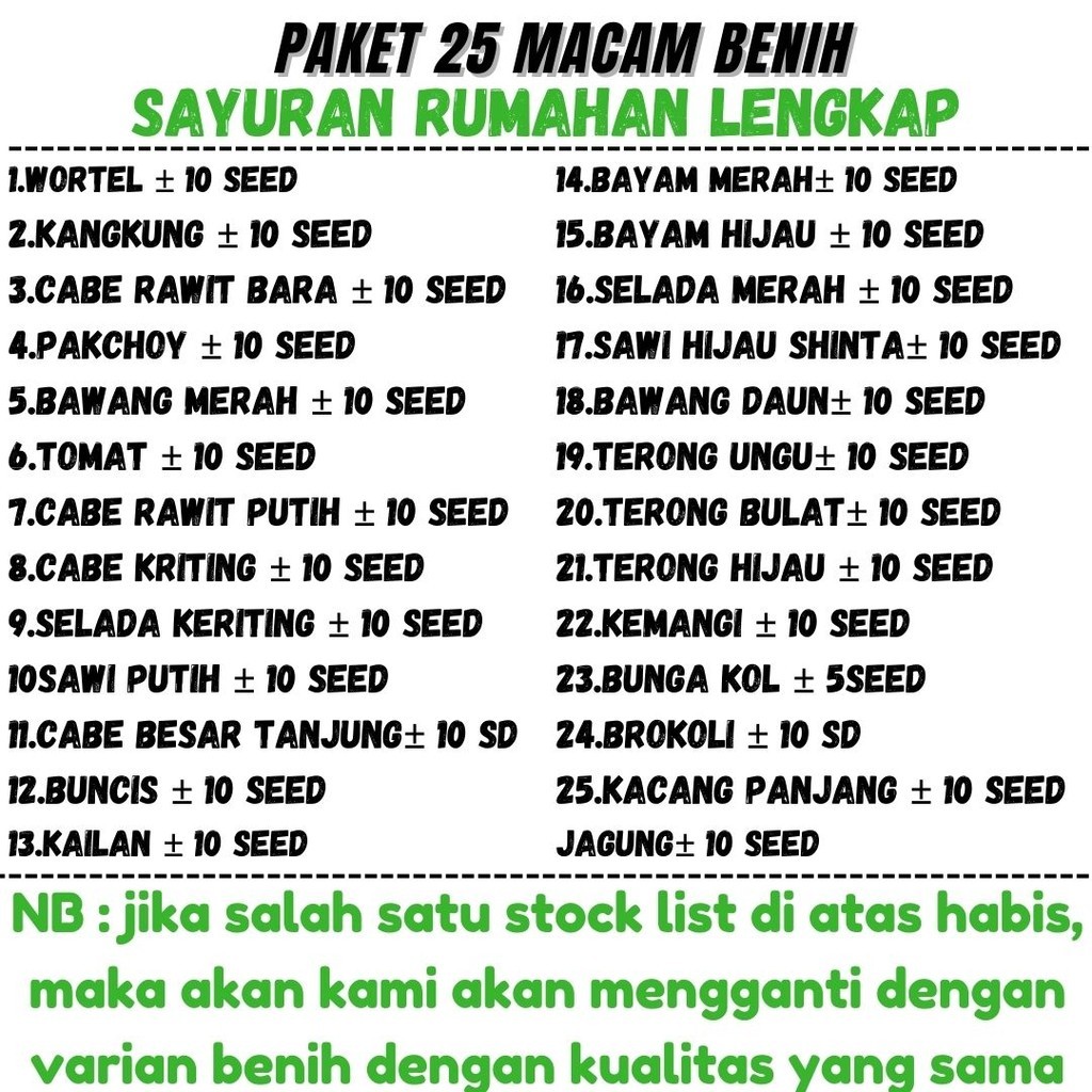 PAKET HEMAT LENGKAP 25 MACAM BIBIT SAYUR SAYURAN TANAMAN HERBAL BUAH BUNGA DLL