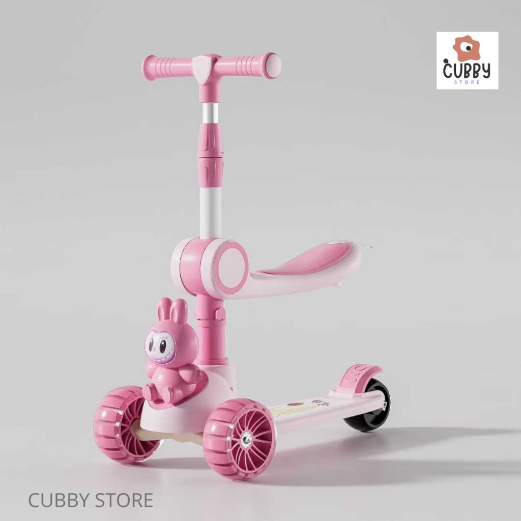 Skuter Anak Roda 3 Ada Dudukan + Lampu dan Music | Scooter Capybara Labubu Kuromi Ready