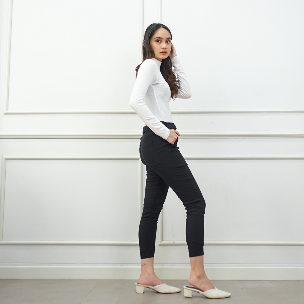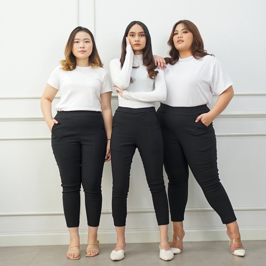 Fashion Lu Store IE.DEMODE Elisa Celana Panjang Wanita Jumbo Kerja Kantor Karet Fit Pants Bahan Soft Jeans Hitam