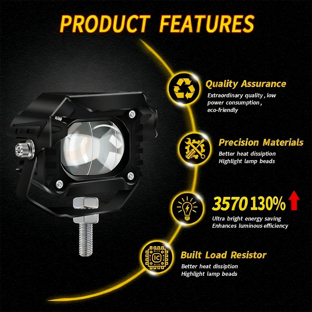 Lampu Tembak Laser LED Motor Super bright Jauh Dekat Kuning Putih Dual CSP Warna 50W 10000LM DC 9V-85V Full Alumunium