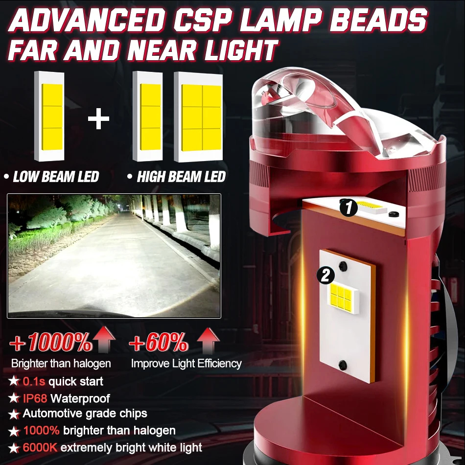 【NEW UPGRADE】Premium Lampu Utama LED H4 Lampu Biled Projector 160W 10000LM DC 9-24V Dengan Kipas Pendingin Full Aluminium Waterproof dan Kipas Pendingin Universal Mobil Motor