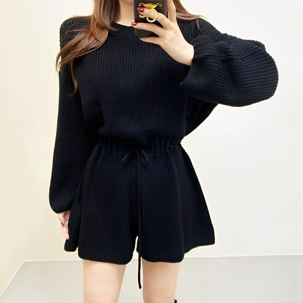 Fashion Lu Store R Outlet - Jumpsuit Overall Rajut Over Size Lengan Panjang Kerah Bulat #4424
