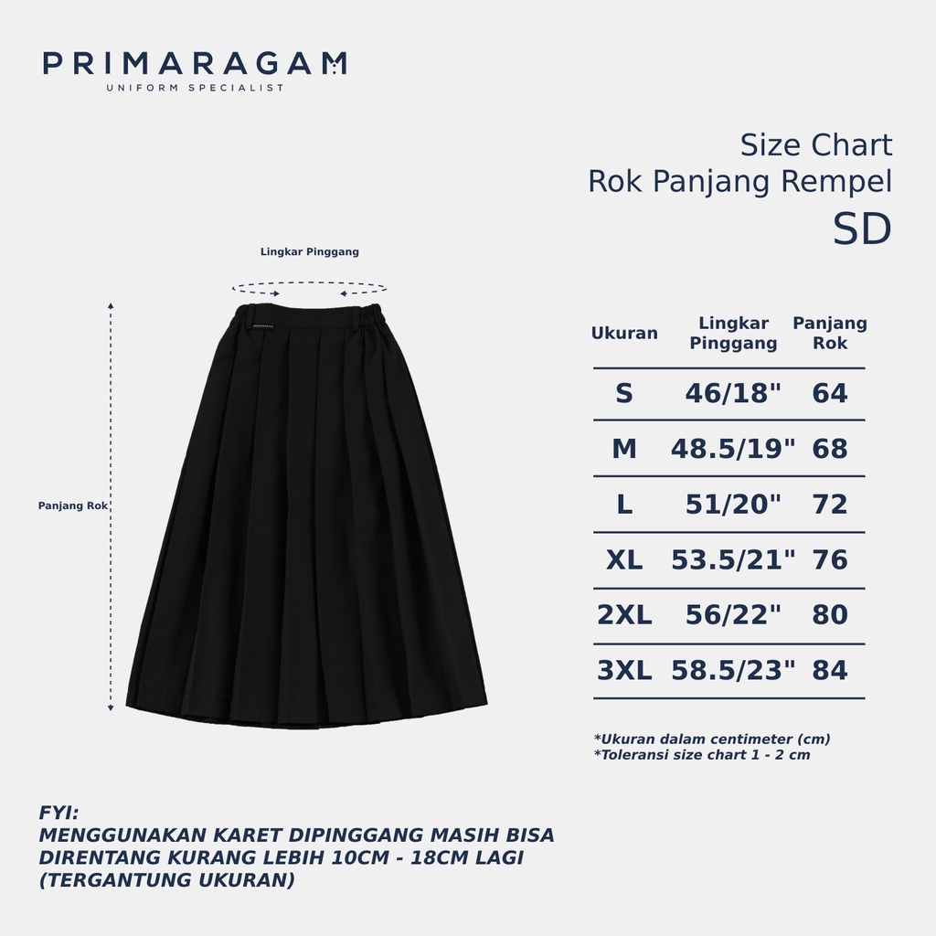Primaragam Rok Seragam Sekolah Sd Hitam Panjang Rempel Lipit Atas Ban Pinggang Karet