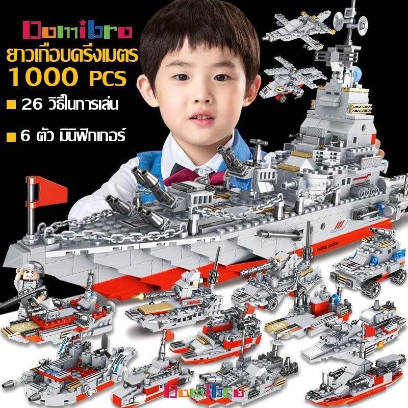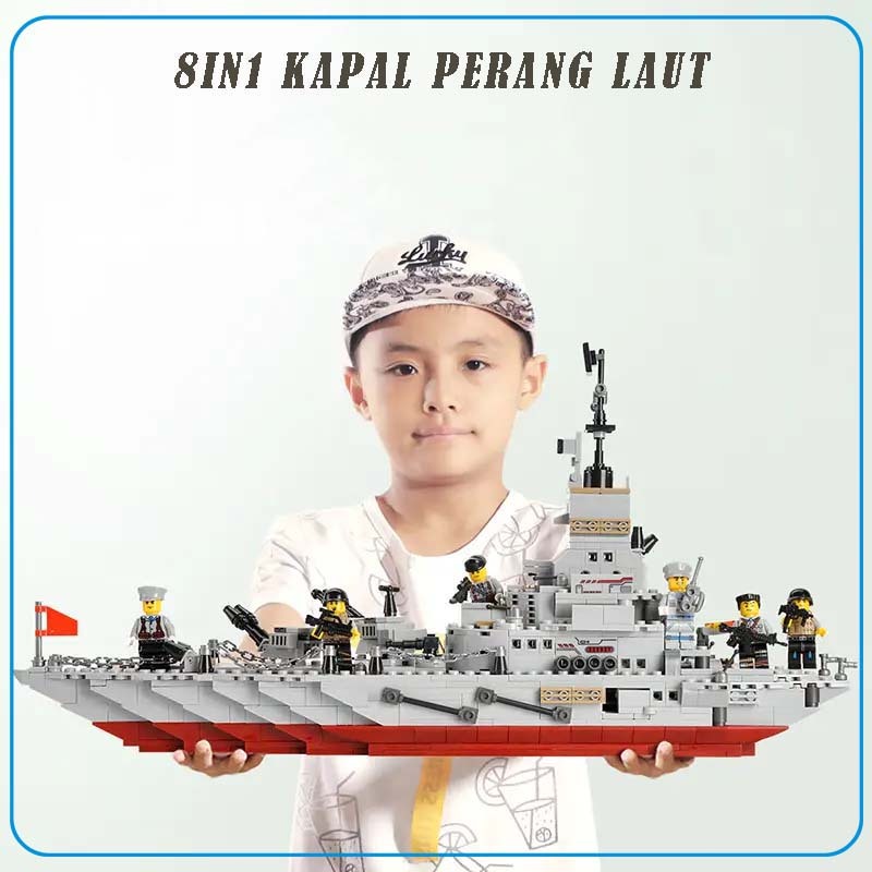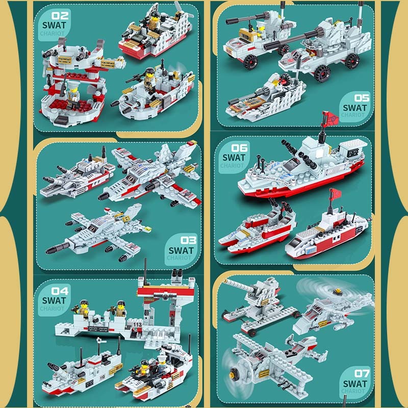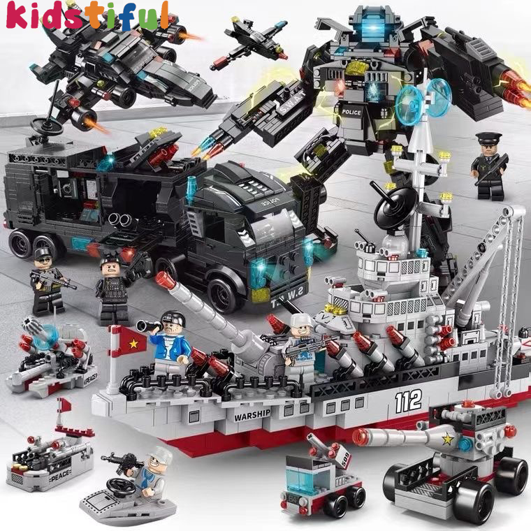 Kapal Induk Mainan Blok 1000Pcs Polisi Warship Seri Military Warship Boat Airplane Car Set Mainan Anak laki laki